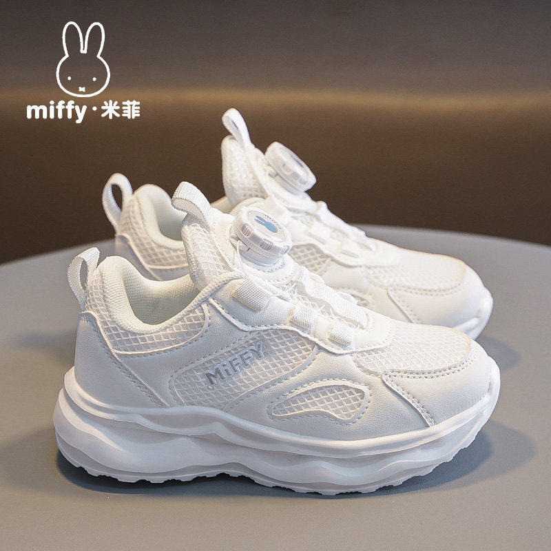 米菲女童鞋子2026春夏季新款儿童透气网面女孩单网薄款白色运动鞋