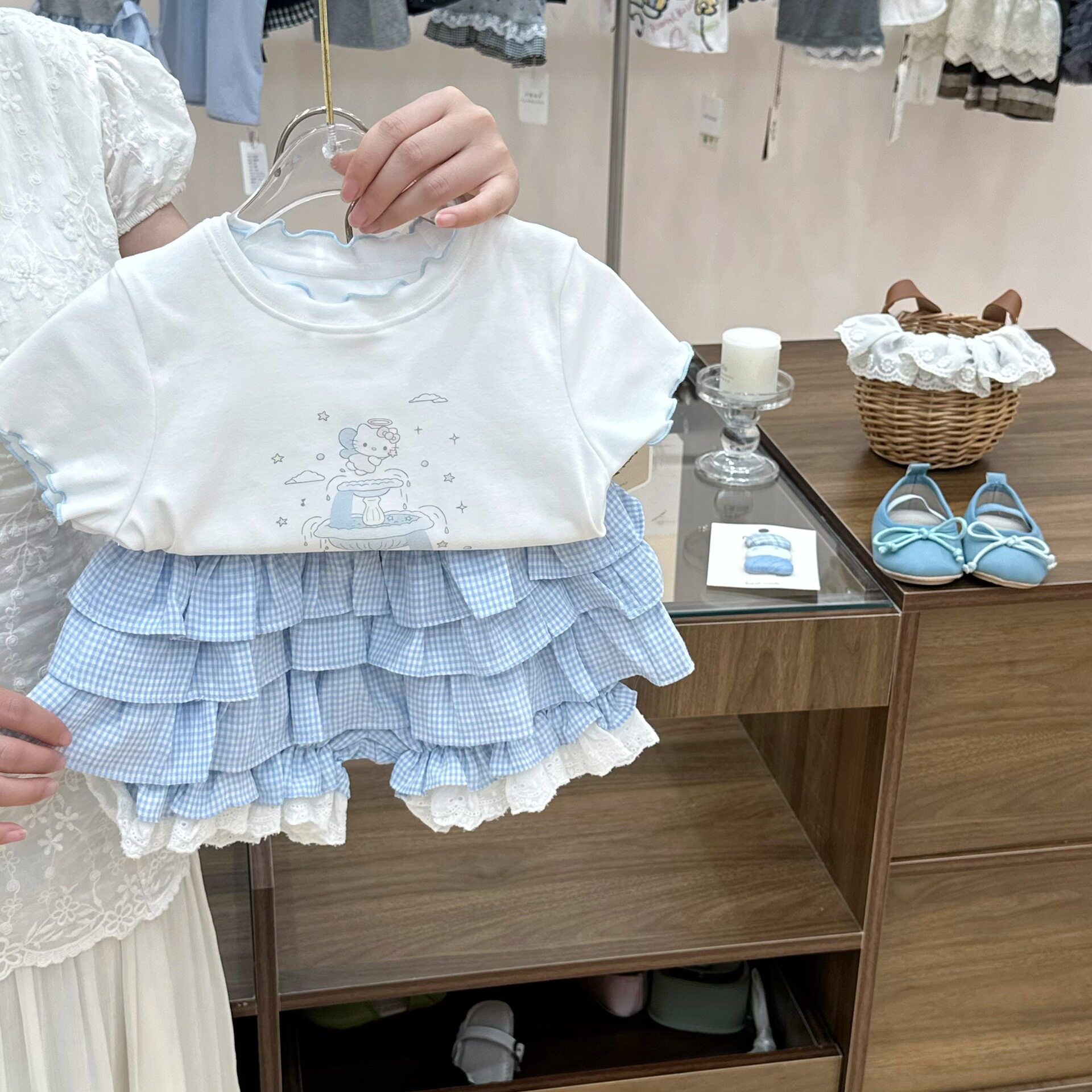 韩版女童短袖T恤上衣2026夏装新款洋气女宝宝小童可爱出游套装