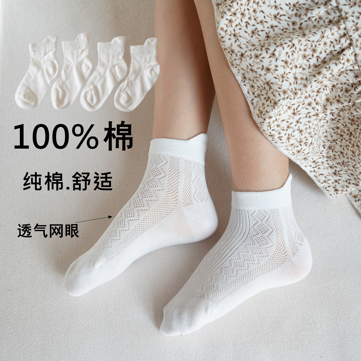 女童短袜100%纯棉透气薄款船袜白色学生袜春夏防臭儿童运动短筒袜