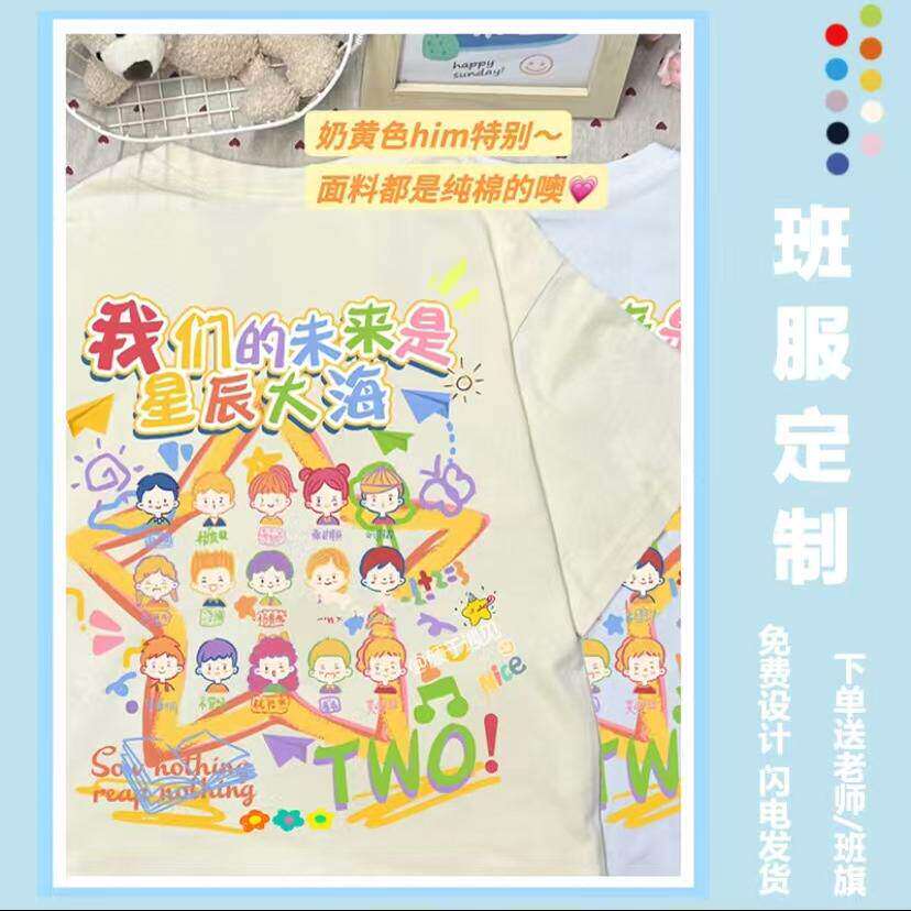 班服定制T恤儿童小学生幼儿园夏季运动会毕业文化衫短袖印字logo