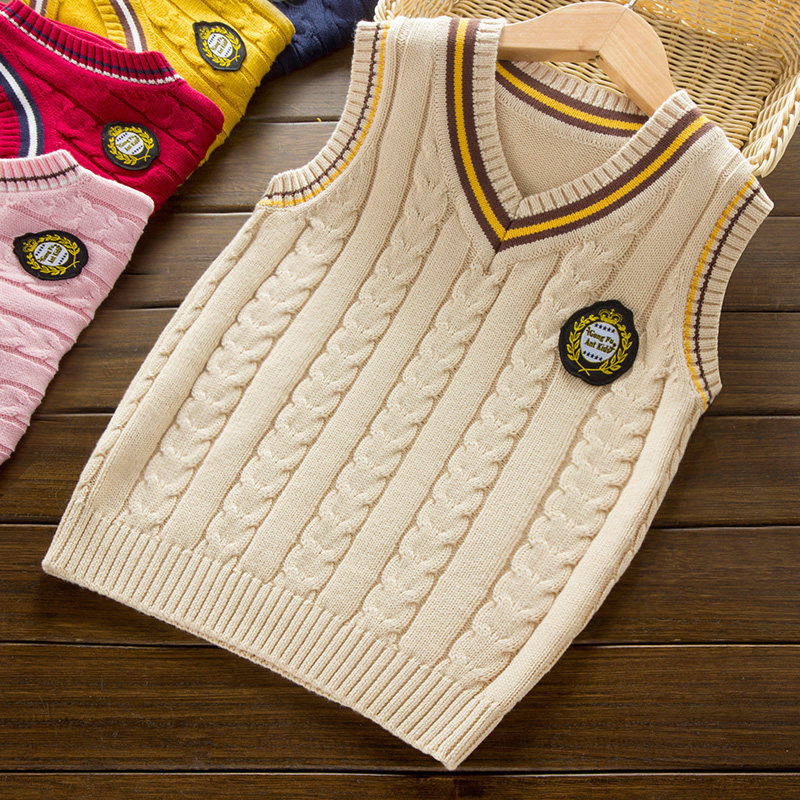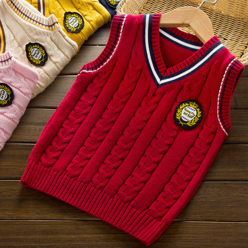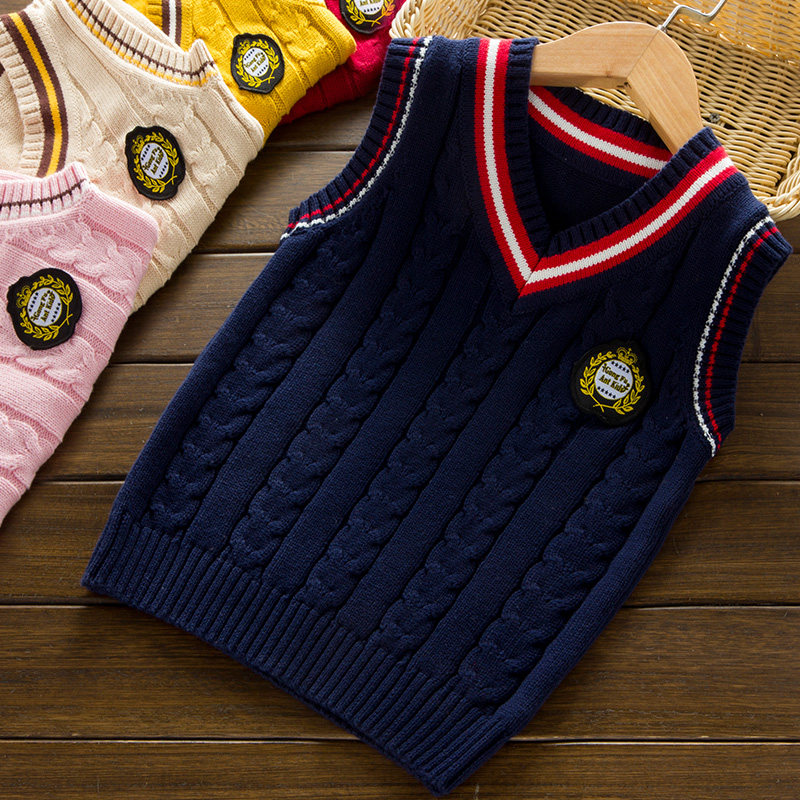 男童针织马甲儿童毛线背心男孩学院风中大童毛衣小孩线衫纯棉马夹