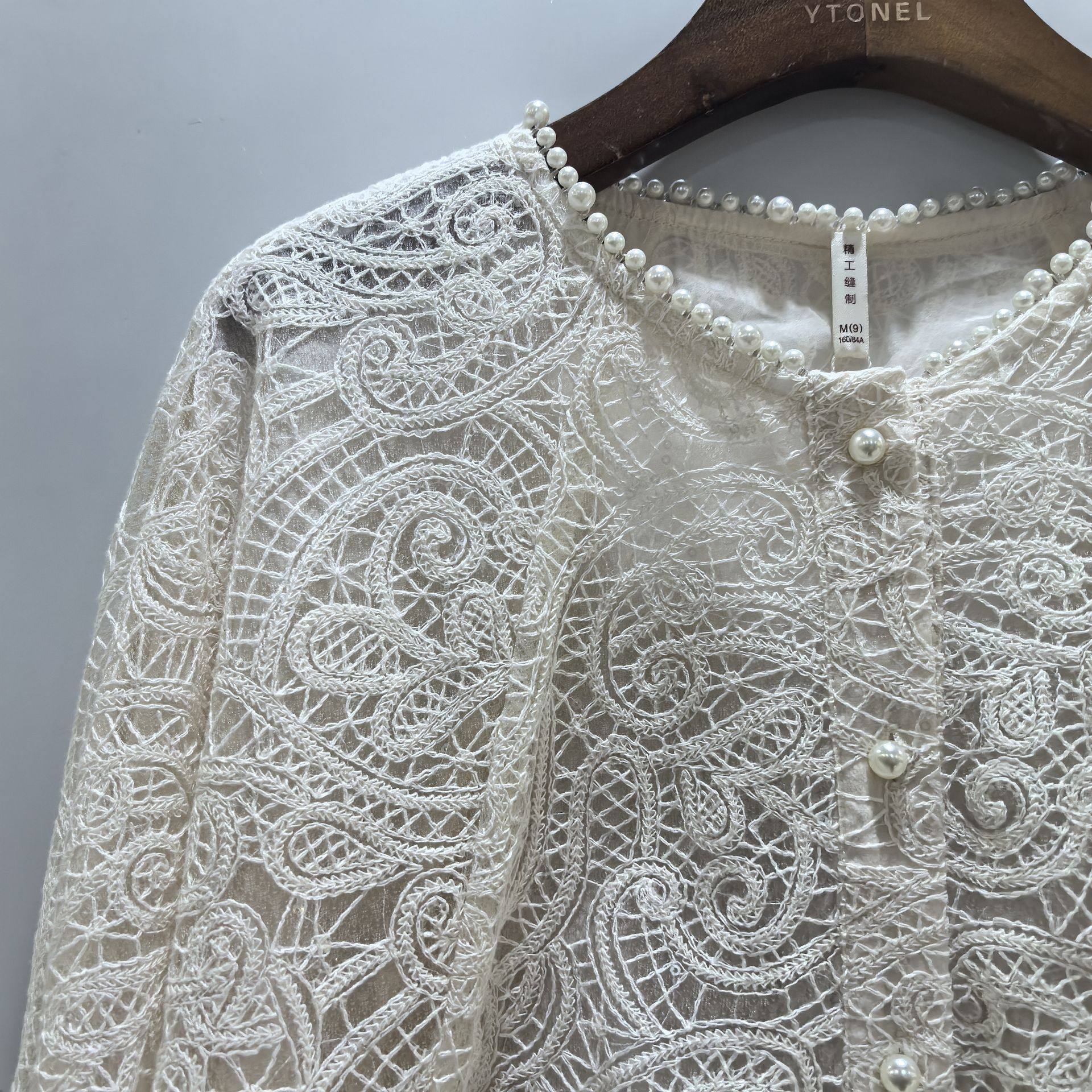 艾丹辰MX261W565春装2026女款时尚韩版珍珠蕾丝镂空减龄外套上衣
