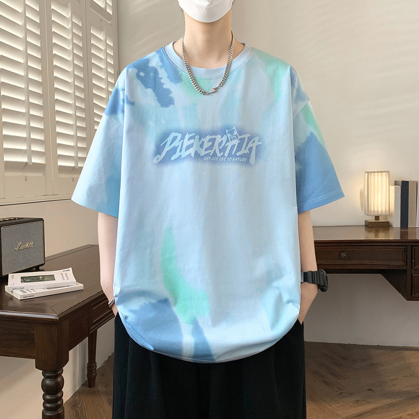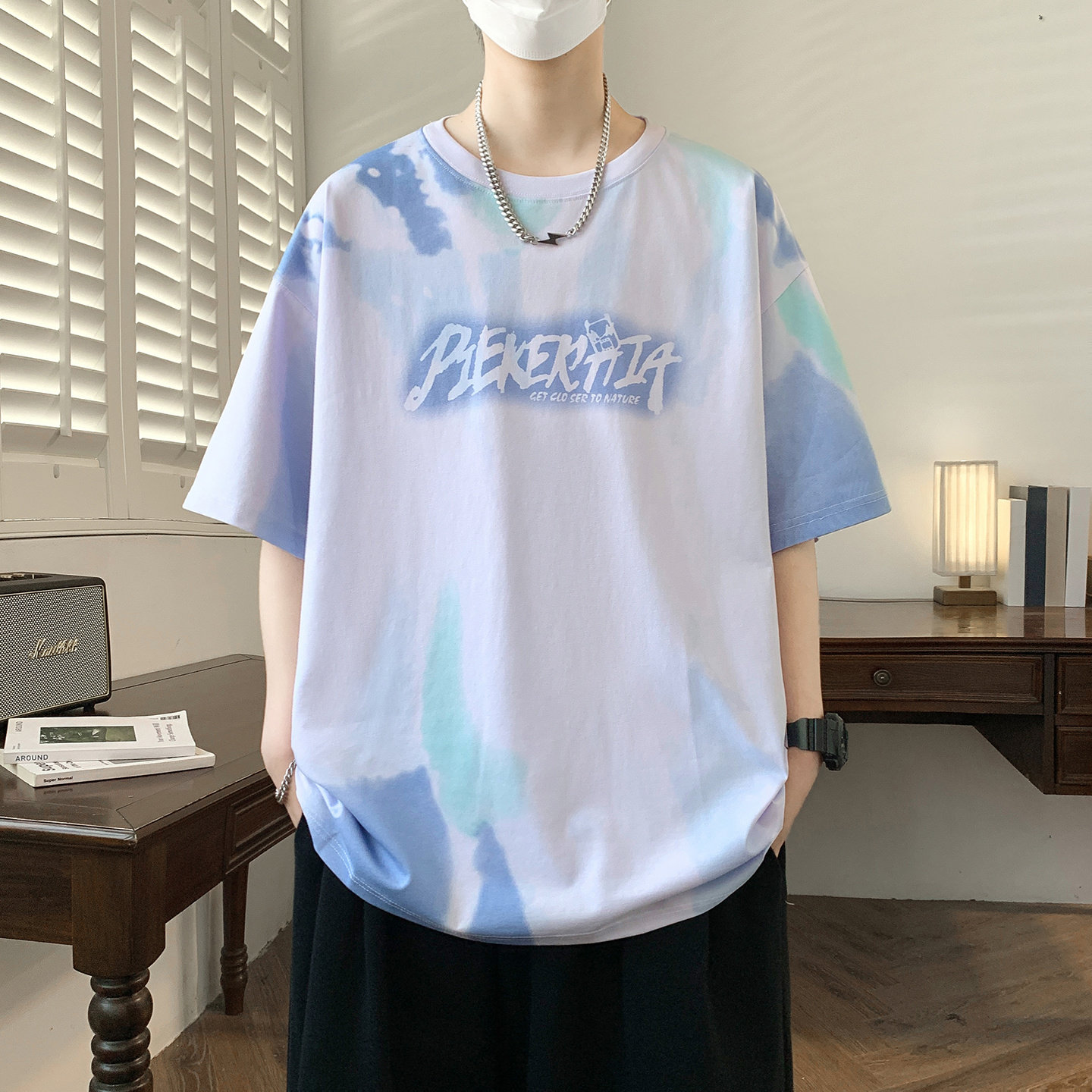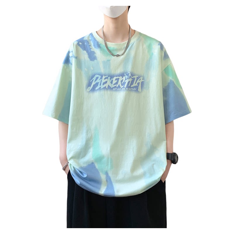 扎染短袖t恤男孩夏季新款初中学生青少年宽松大童半袖上衣服潮流