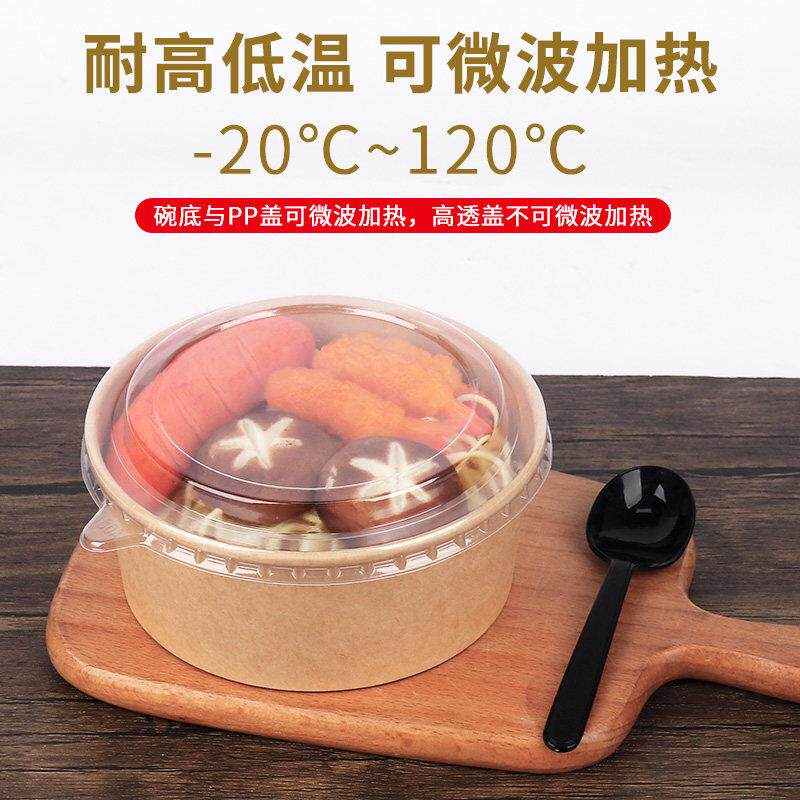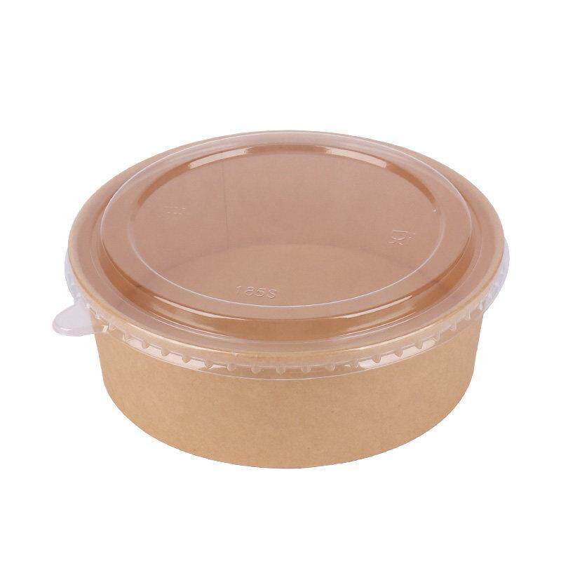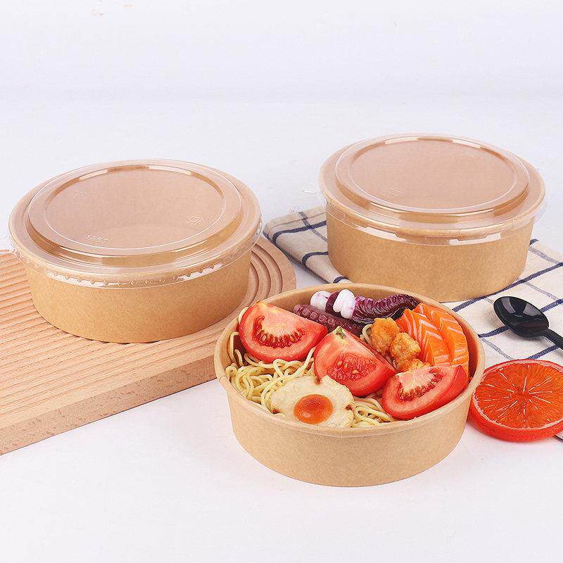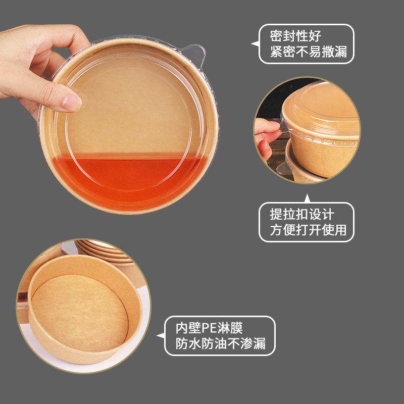 牛皮纸打包盒一次性圆形水果盒沙拉碗加厚餐盒带盖子卤肉饭外送纸