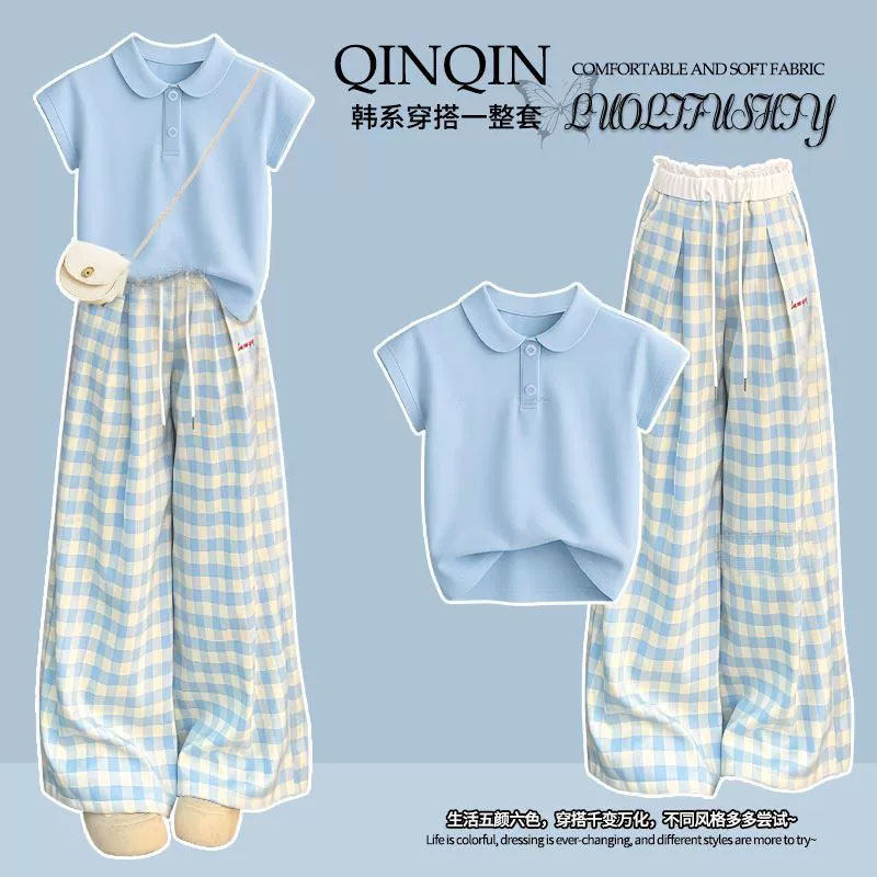 超火的女童纯棉t恤短袖2026新款巨好看夏装套装中大童装polo上衣