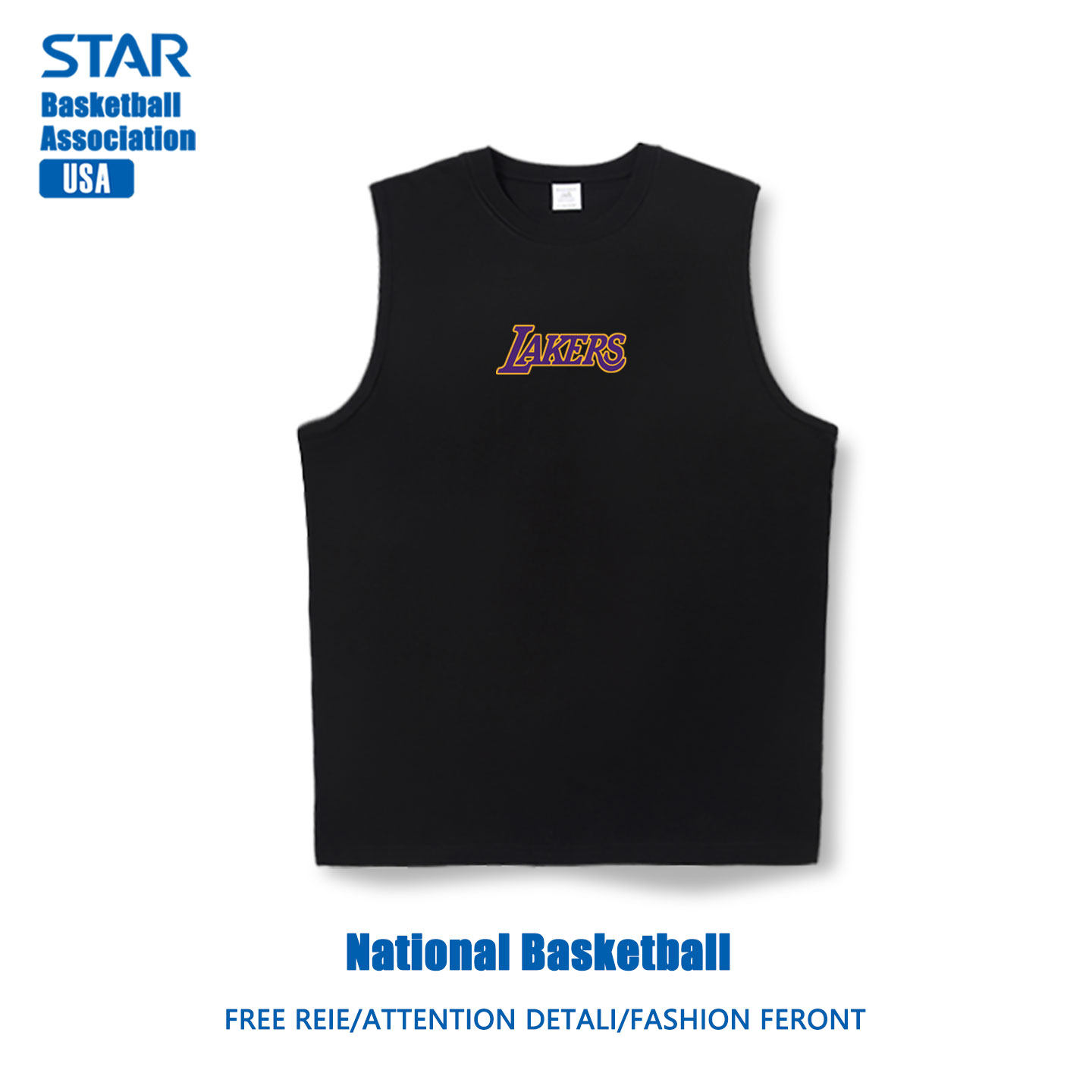 篮球背心无袖男运动湖人队训练服宽松纯棉上衣夏季外穿休闲投篮