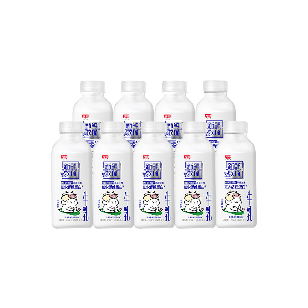光明新鲜牧场420ml*9瓶低温生牛乳牛奶营养早餐佐餐学生儿童
