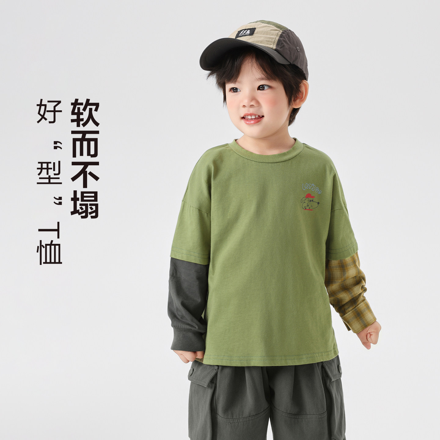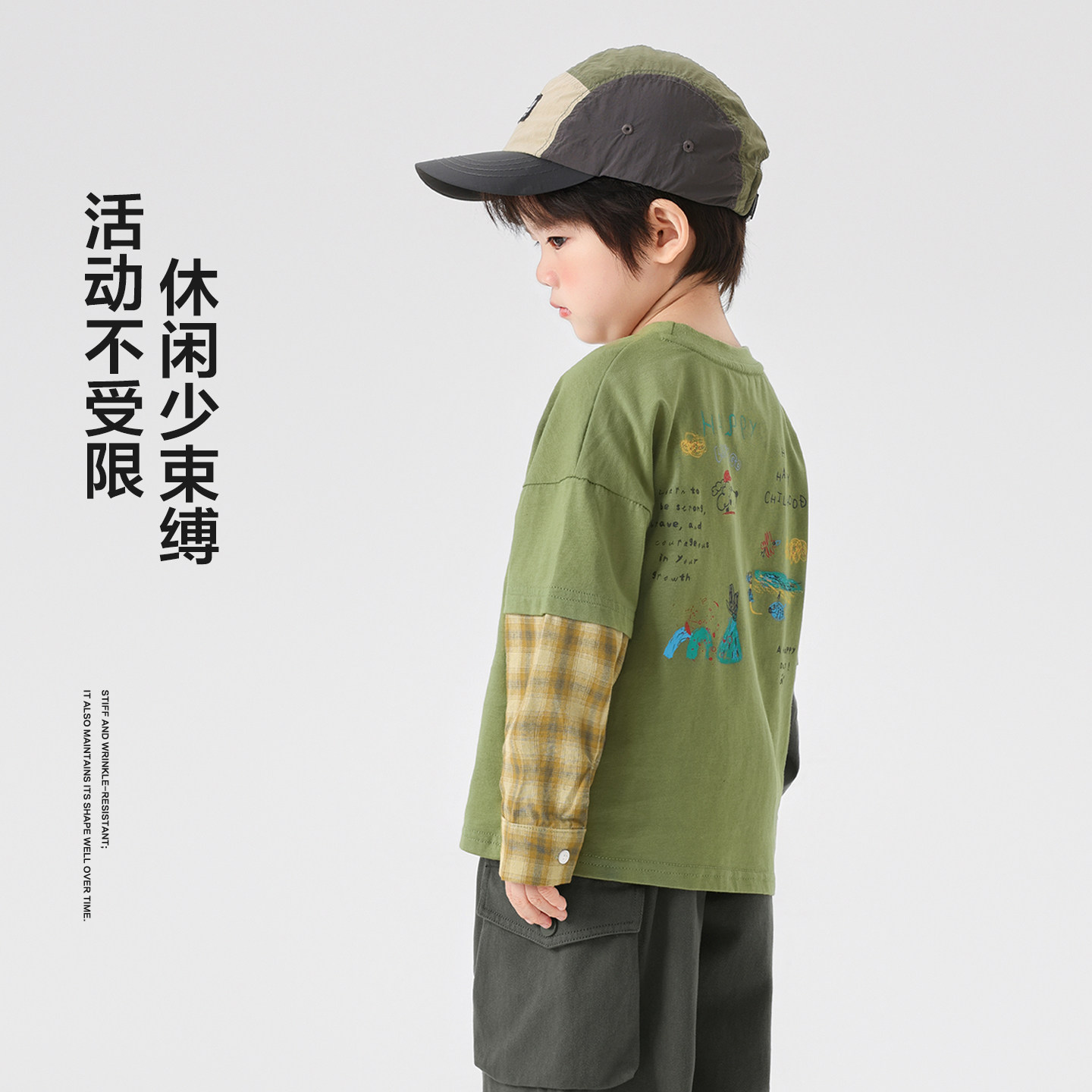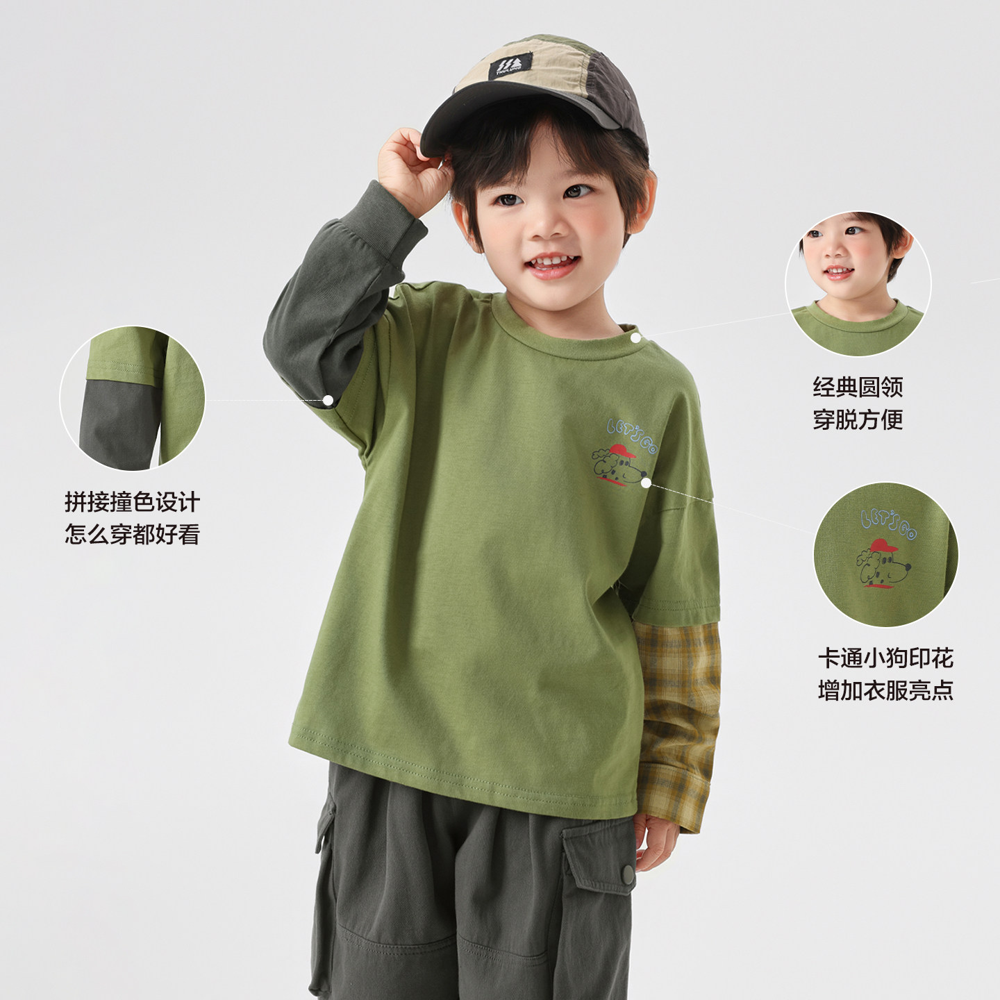 男童纯棉假两件长袖T恤春装2026新款春秋童装儿童宝宝打底衫上衣