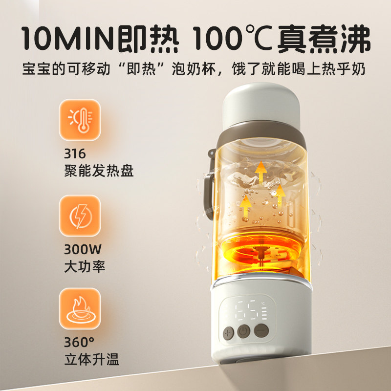 Spedu便携式恒温水杯婴儿冲奶外出无线加热婴儿专用保温杯免插电