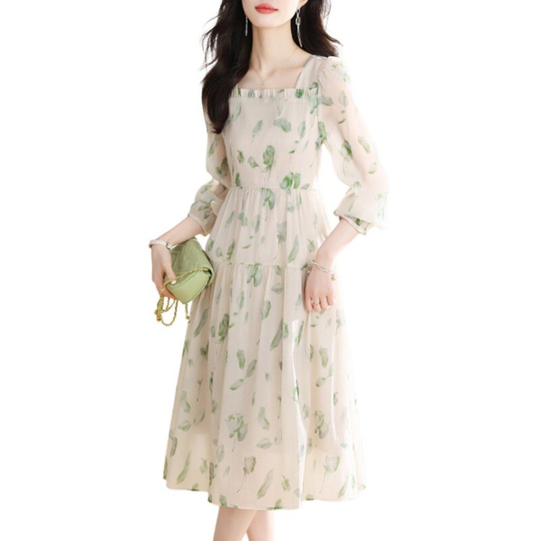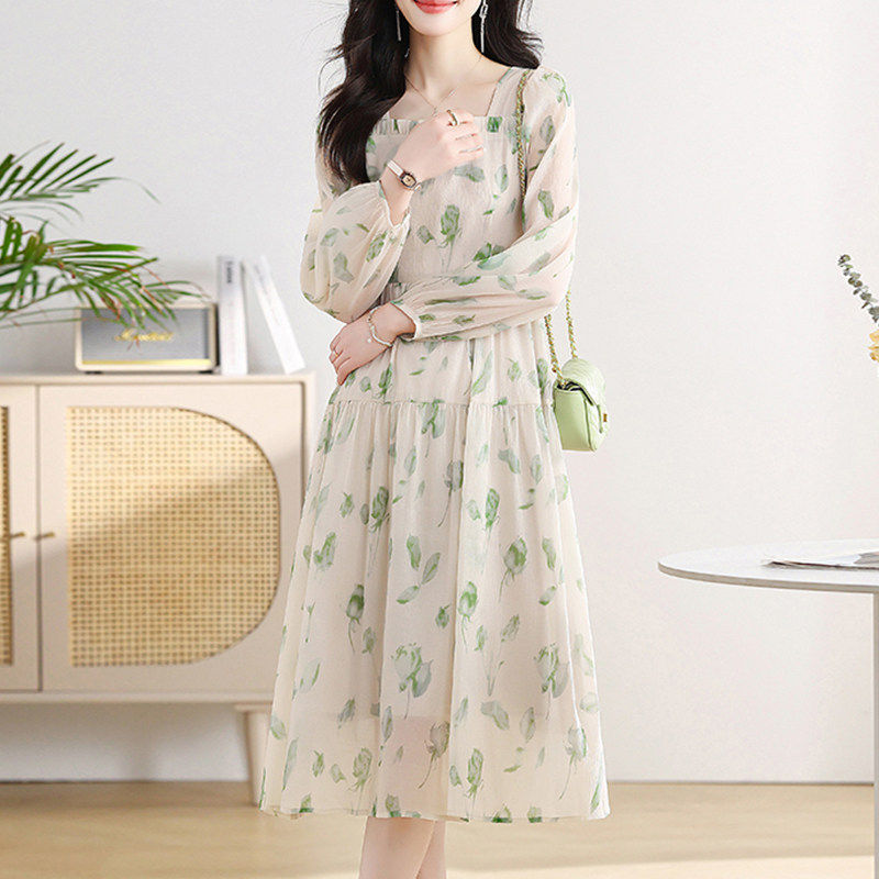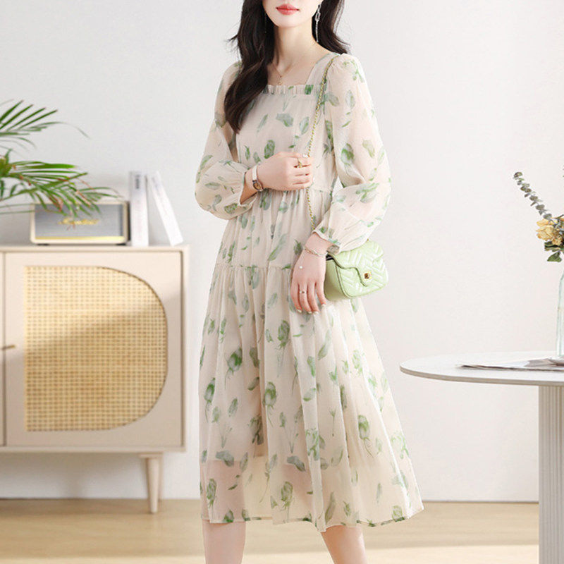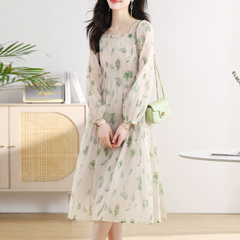 碎花雪纺连衣裙子女士春秋季2026年新款小个子妈妈长袖气质中长裙