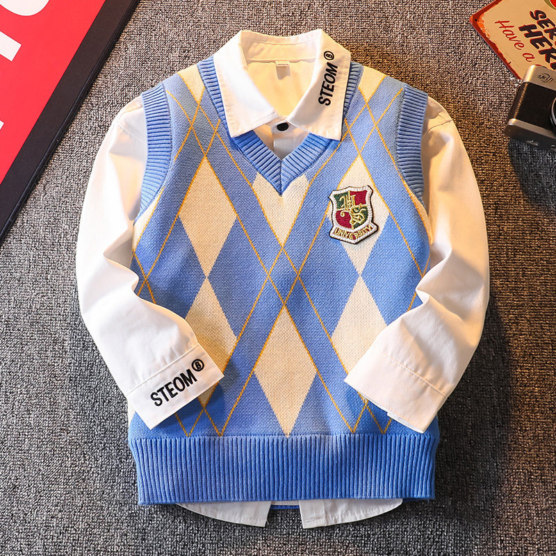 男童毛衣马甲纯棉2026新款中大儿童春秋款针织背心男孩春装学院风