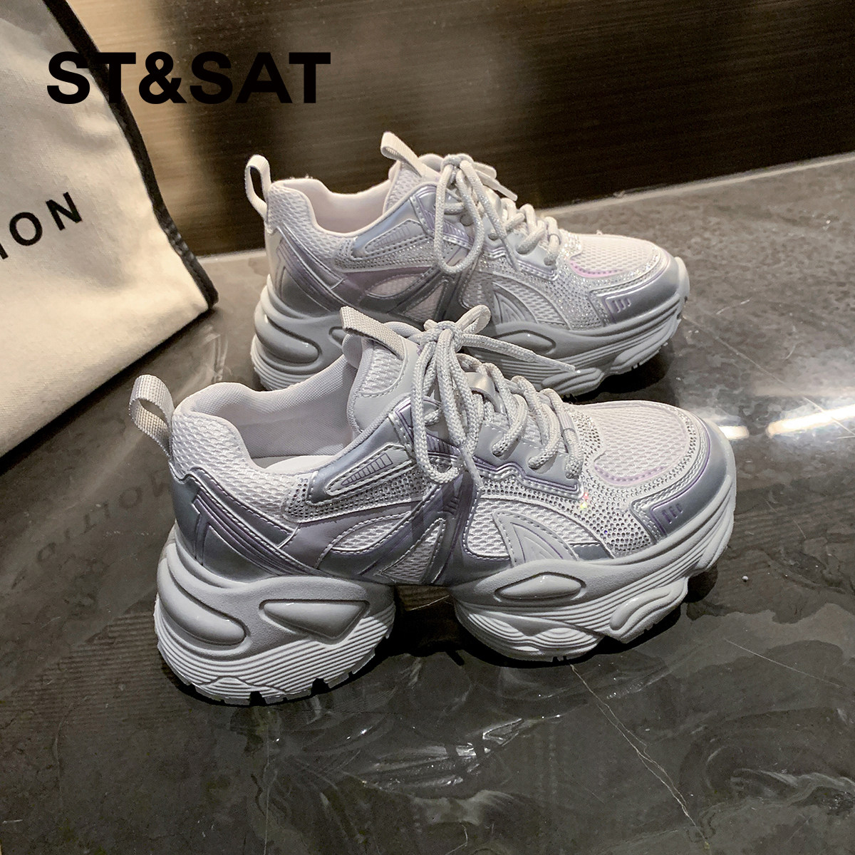 星期六老爹鞋女2025新款夏季网面透气厚底增高休闲运动鞋女款鞋子
