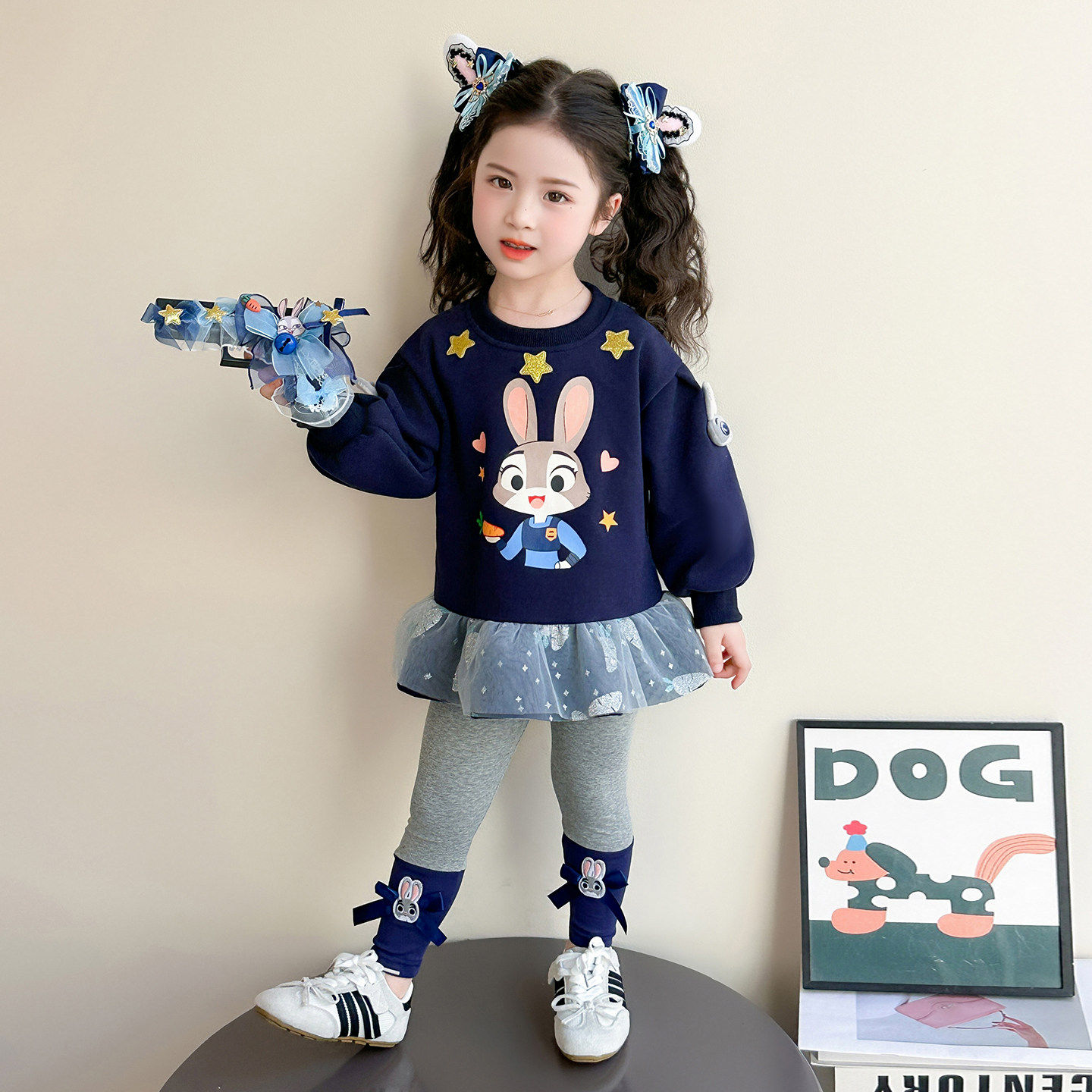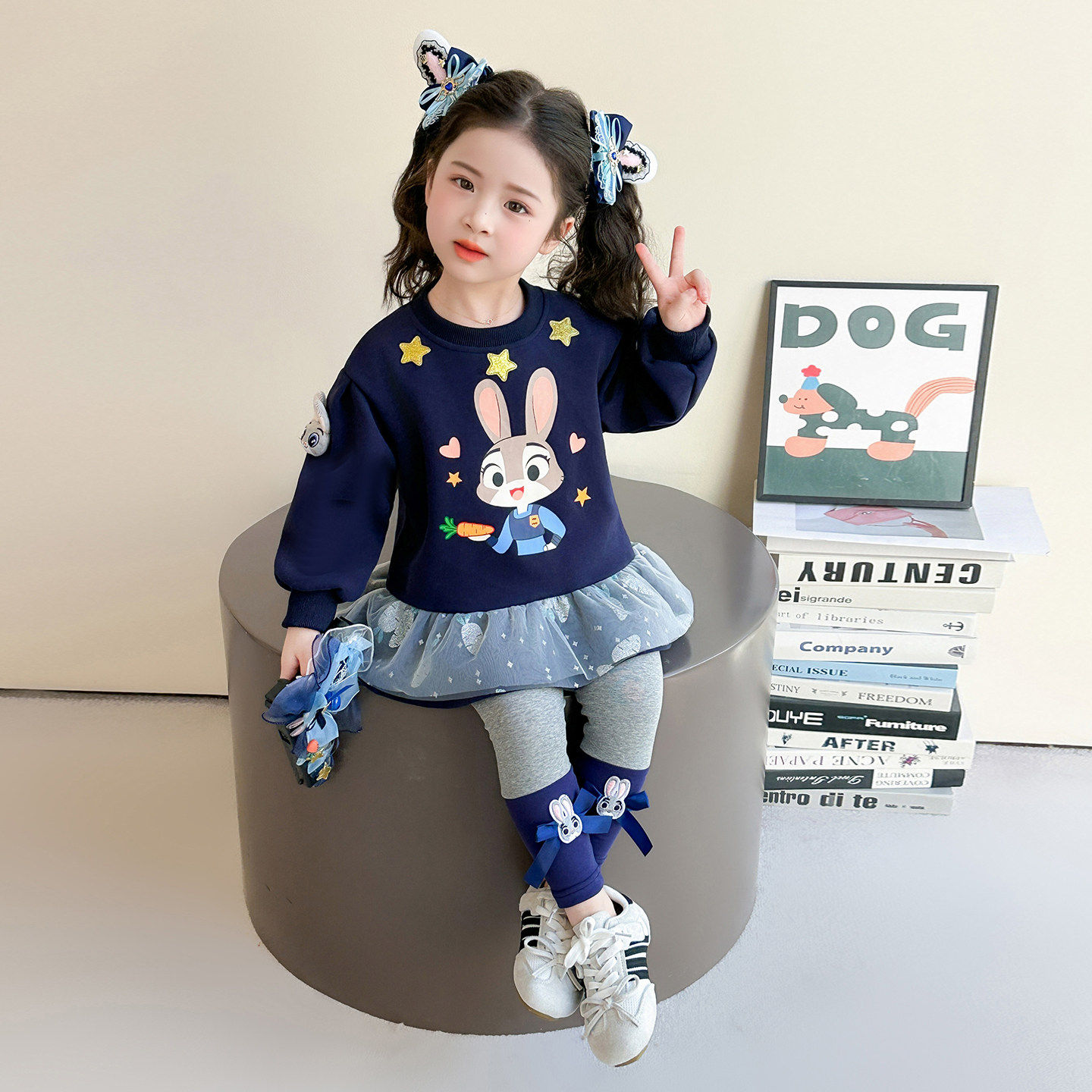 时髦2026蓝兔女新款款春季宝宝女童运动套装洋气春装儿童卫衣春秋