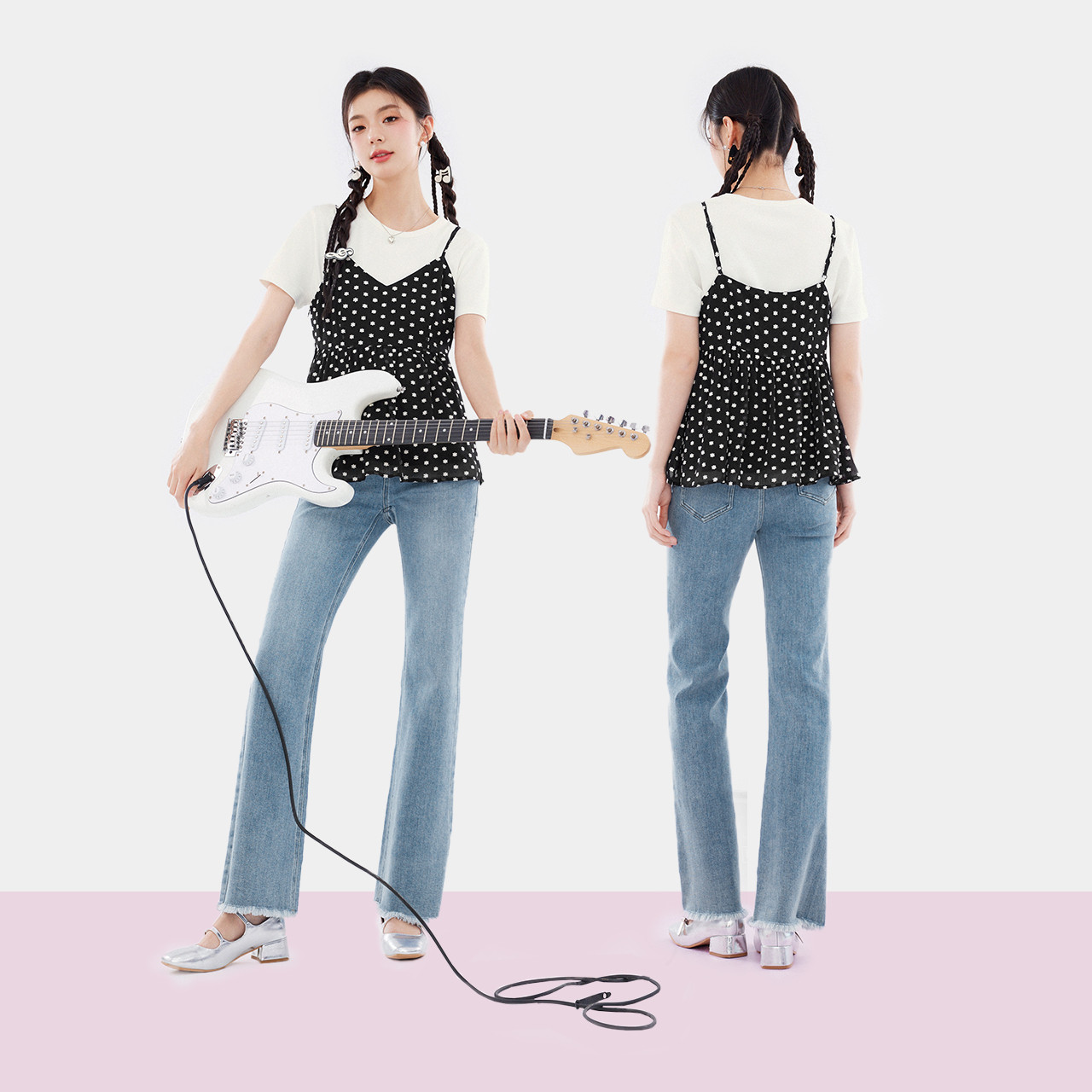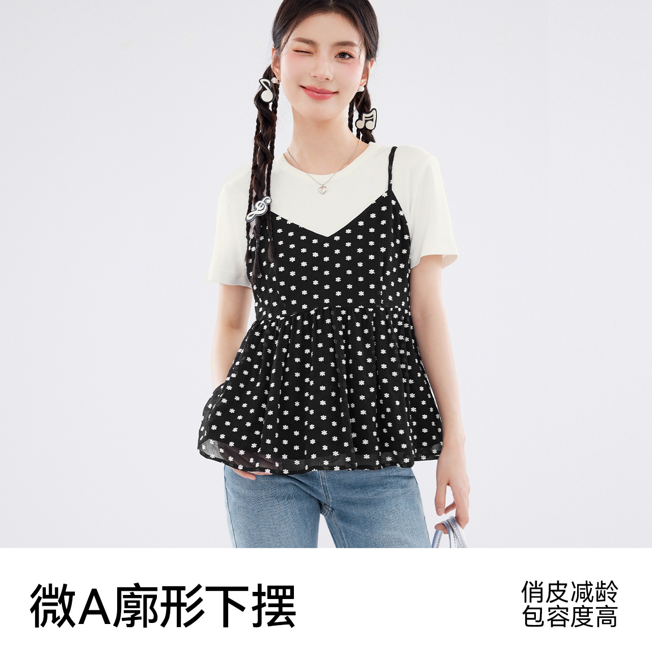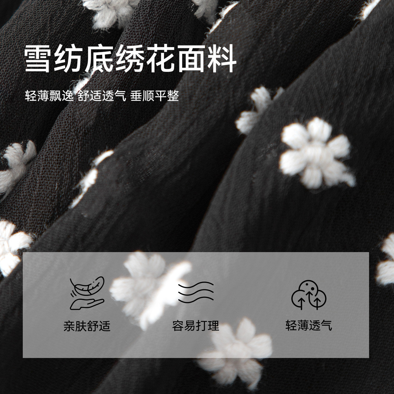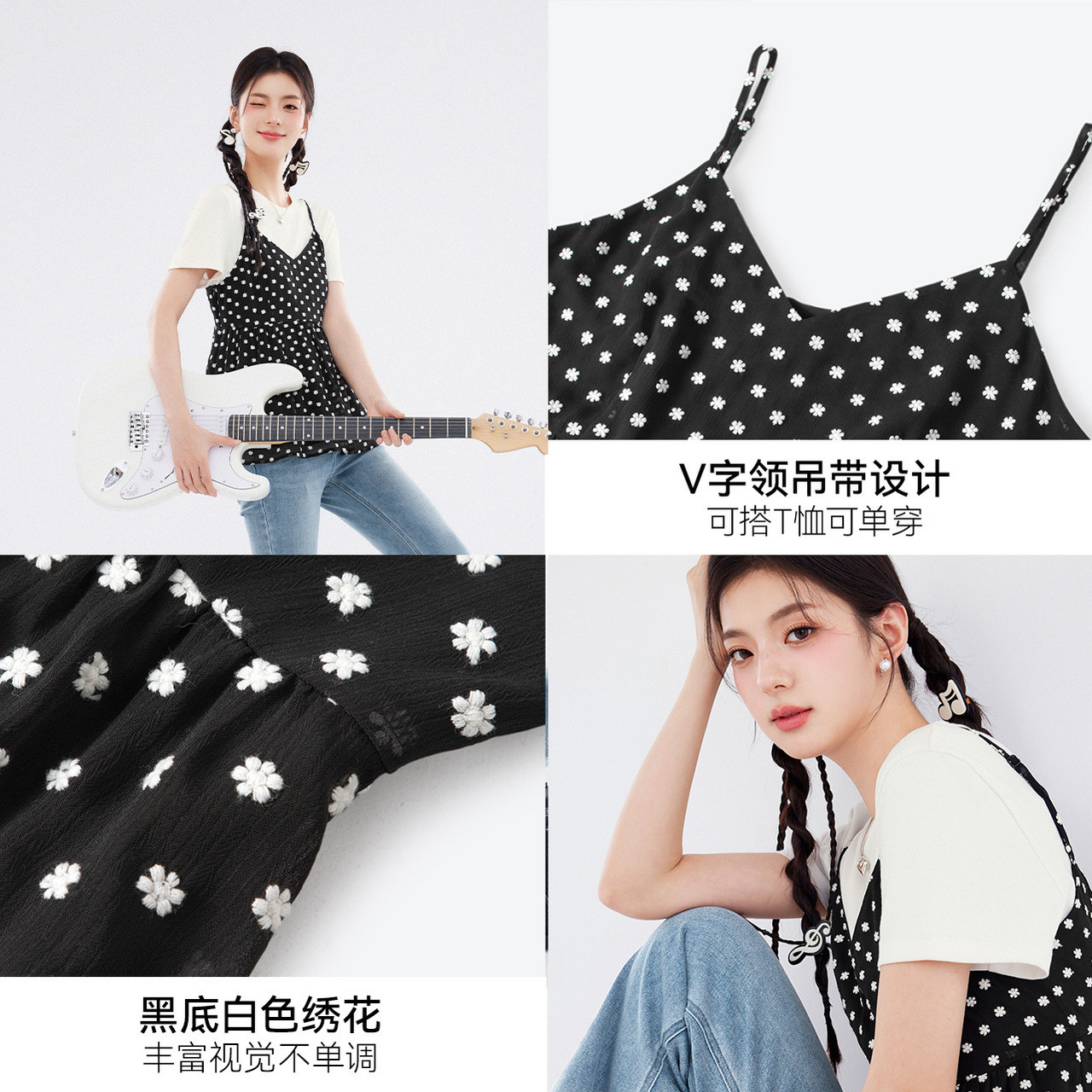 诗凡黎黑色v领绣花雪纺吊带连衣裙春夏短款上衣女伊芙丽outlets店