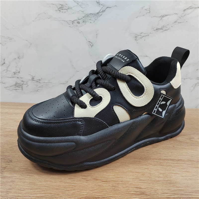 商场撤柜头层牛皮熊猫鞋女2025春季新款厚底面包鞋拼色运动老爹鞋