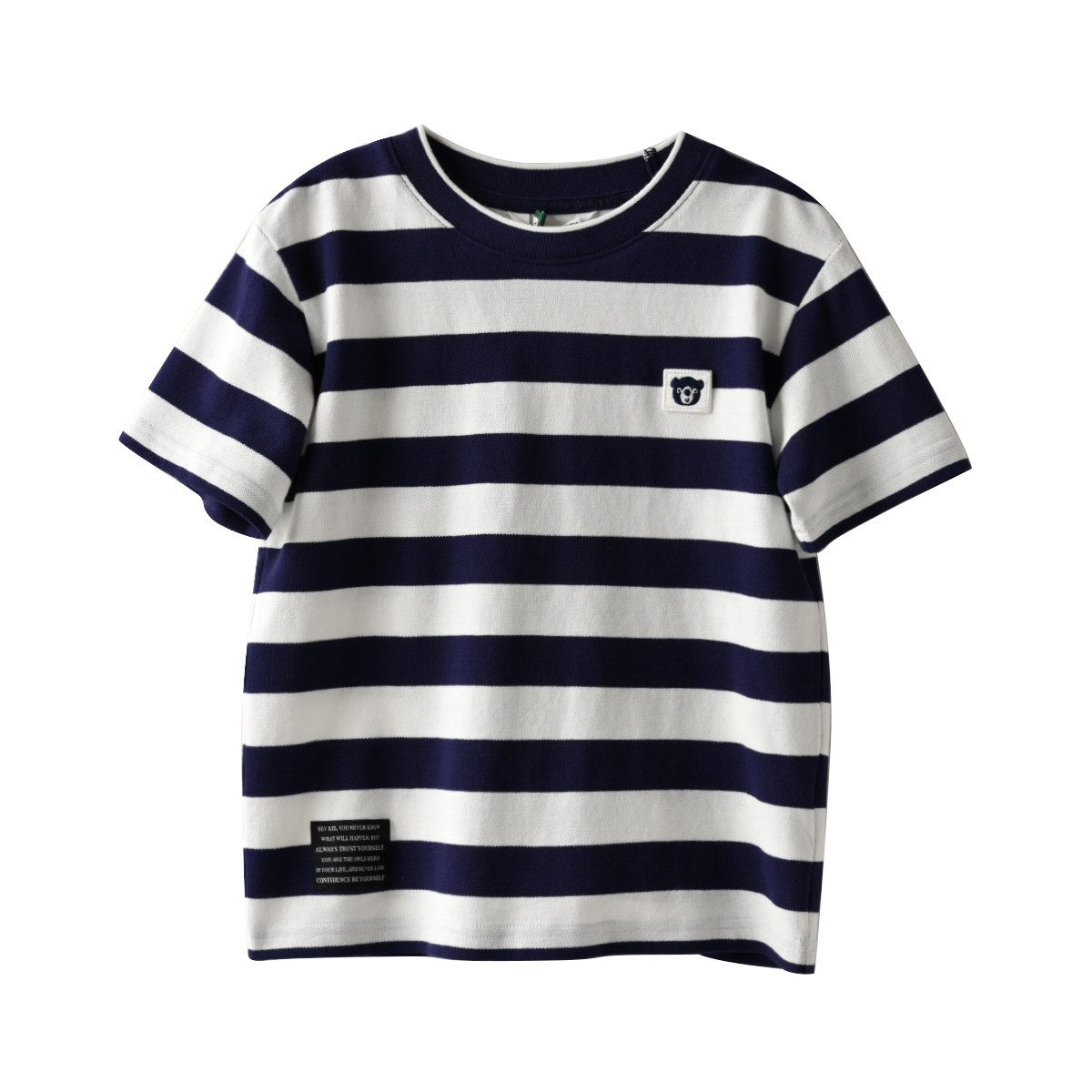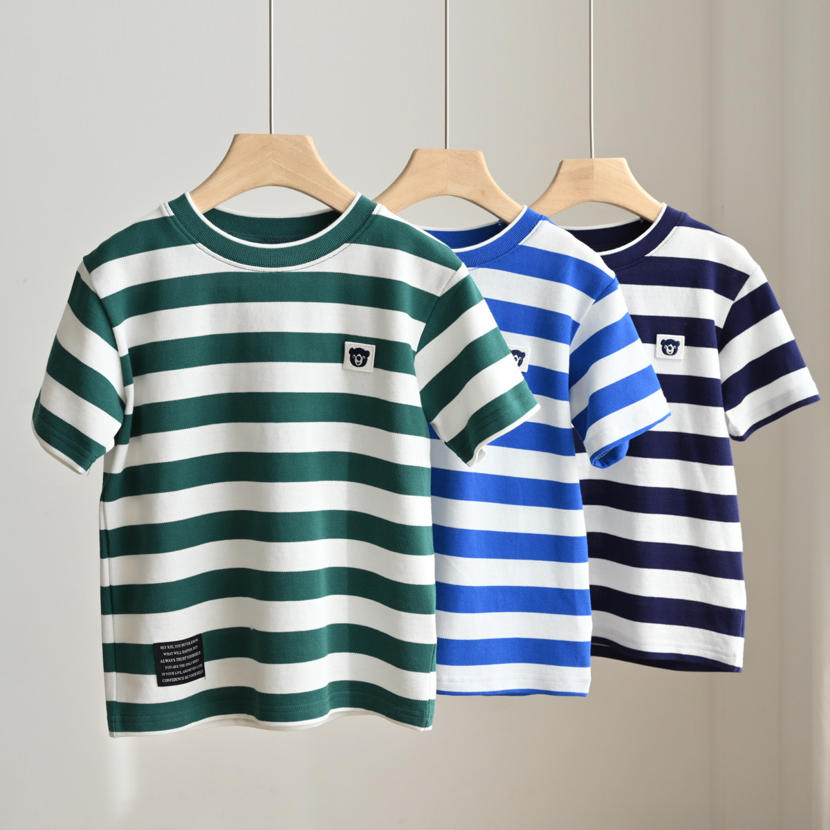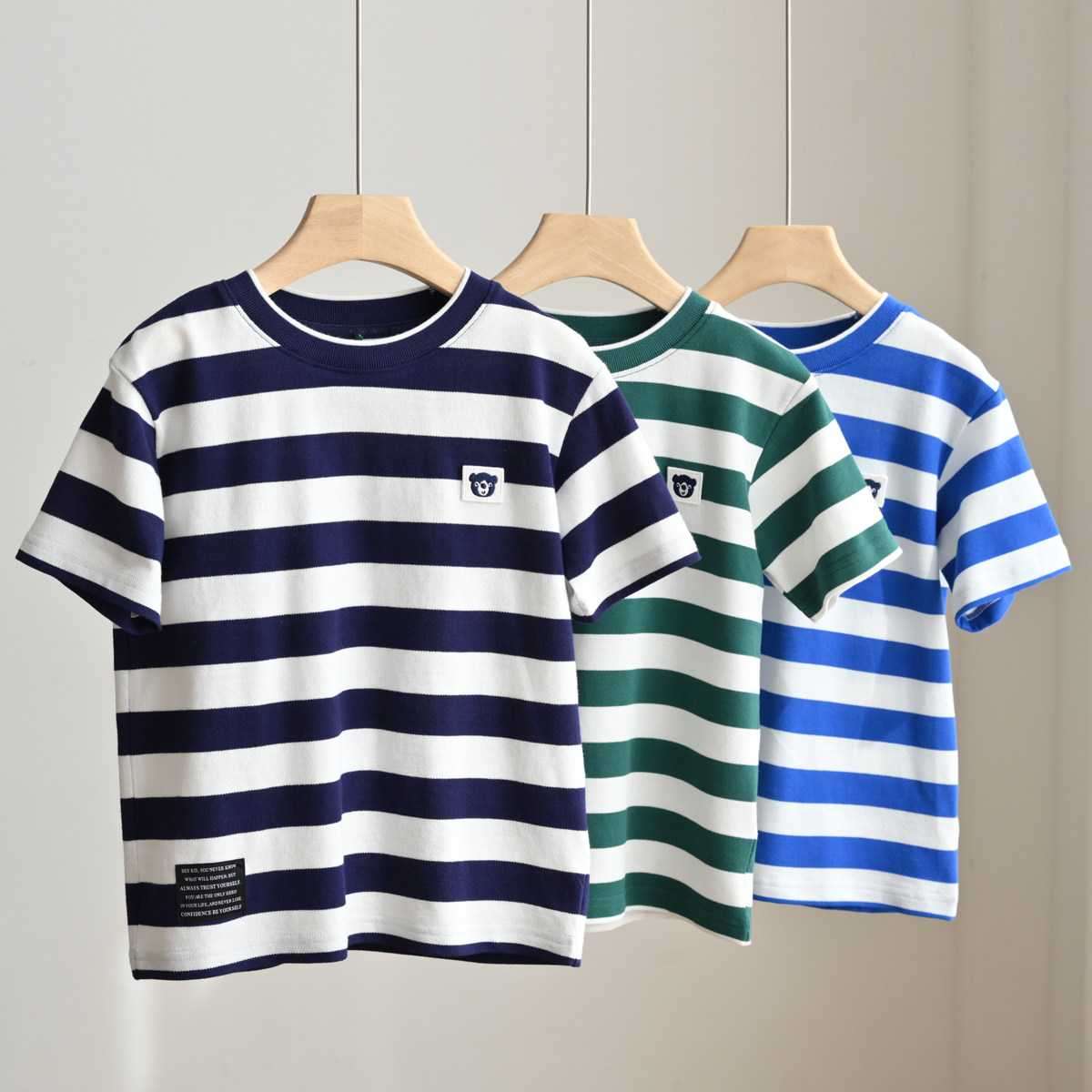 A类 清爽透气 儿童条纹网眼T恤 男童纯棉圆领短袖衣 中大童 夏款