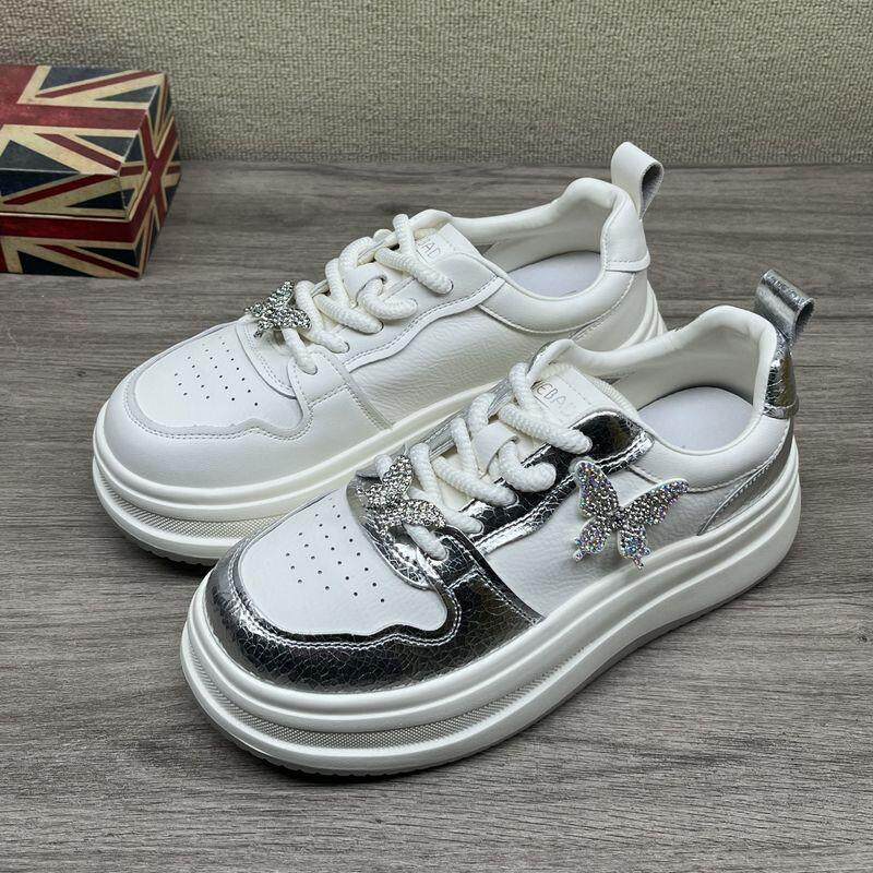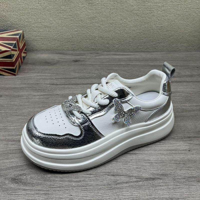 2025年春夏款品牌专柜正品蝴蝶结水钻圆头厚底增高休闲运动女板鞋