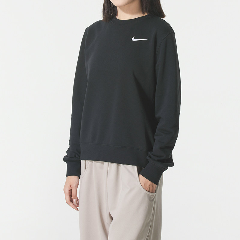 耐克卫衣女2025新款秋季圆领套头衫跑步上衣黑色宽松女士运动外套
