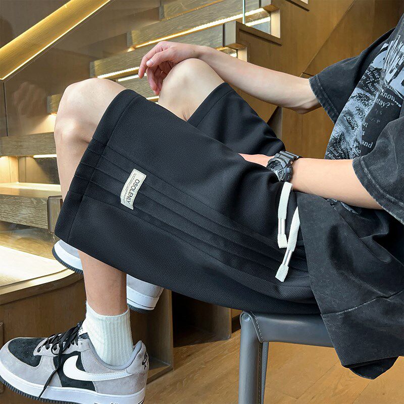 夏季薄款冰丝短裤男生初中生休闲运动中裤青少年高中黑色五分裤子