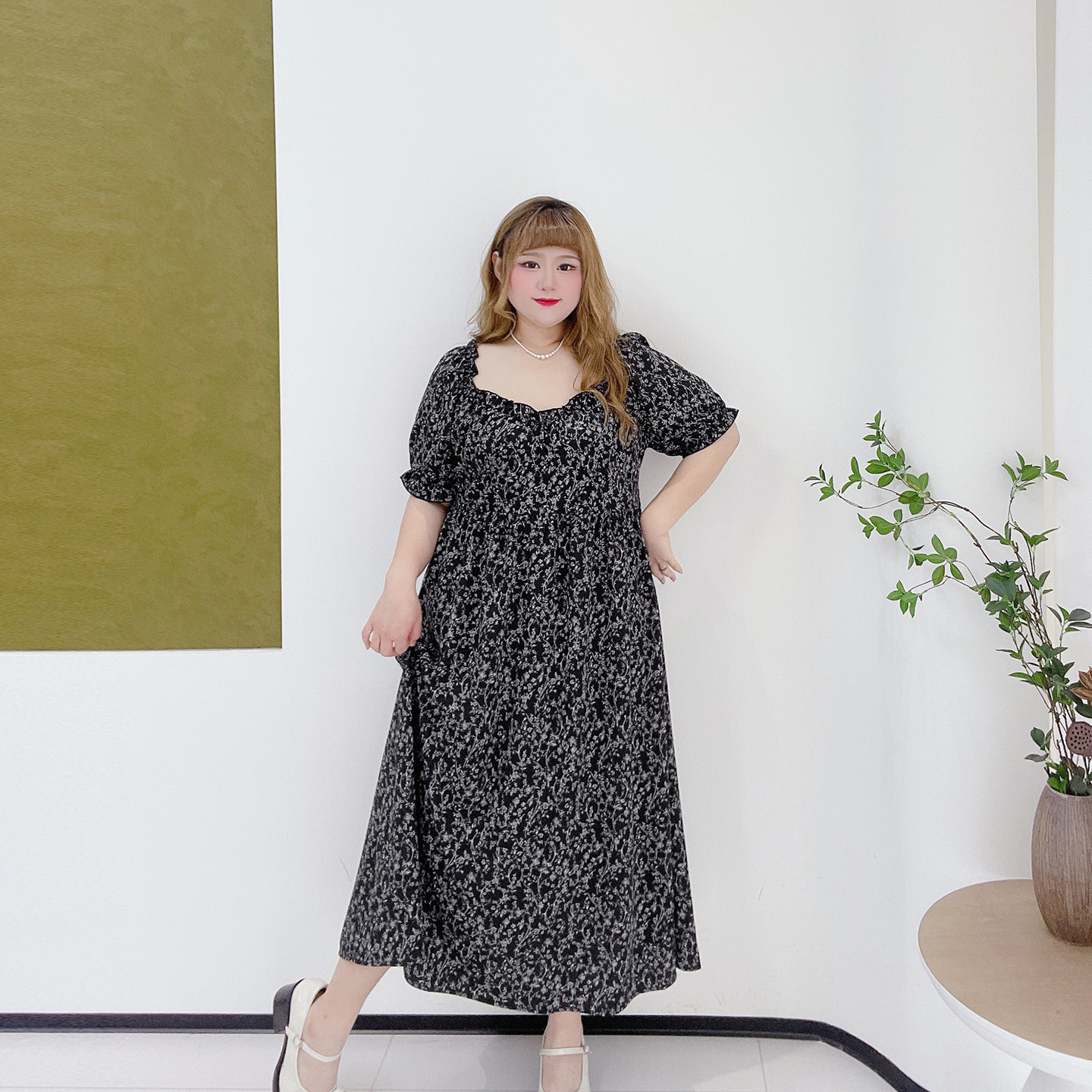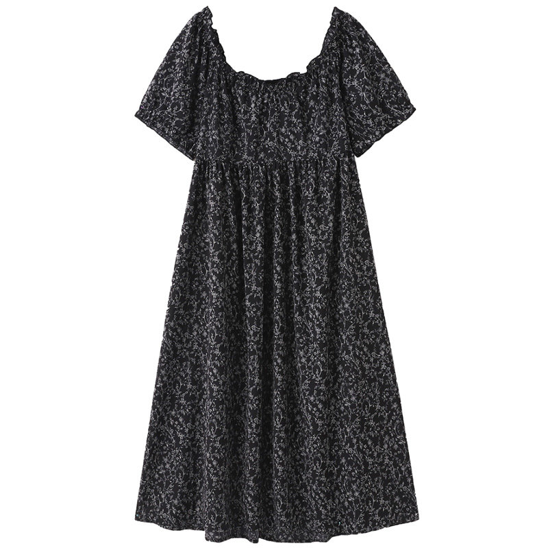 300斤孕妇遮肚碎花过膝长裙子胖仙女莹莹大码女装胖m夏方领连衣裙