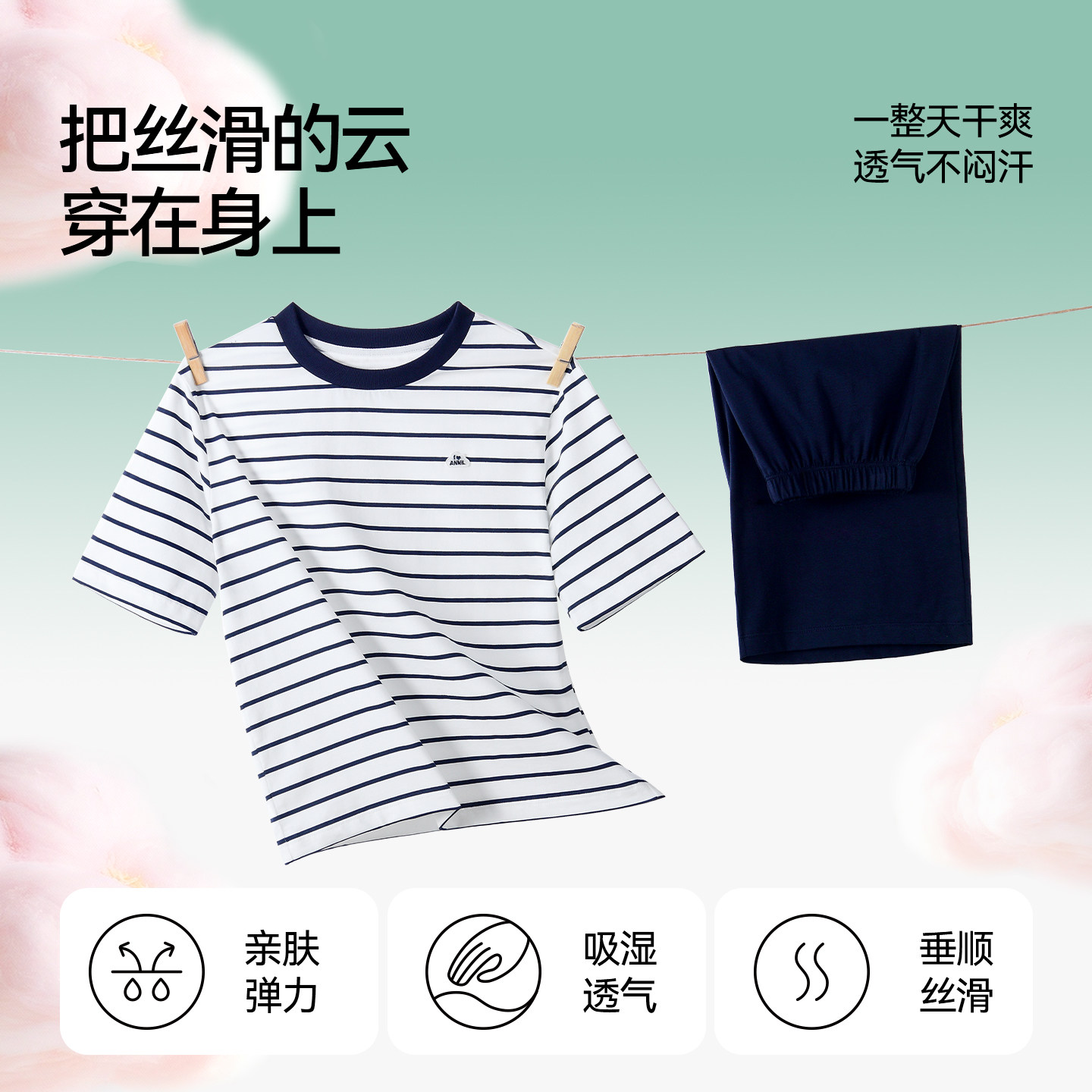 安奈儿童装男童女童圆领短袖家居套装2026夏新款撞色条纹睡衣裤