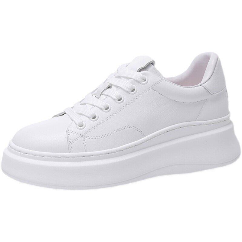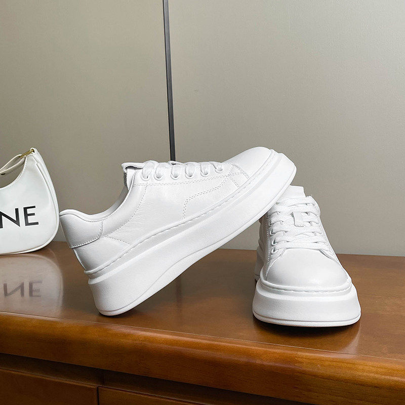 手工~超轻~欧货头层牛皮小白鞋女厚底真皮简约百搭休闲 系带松糕