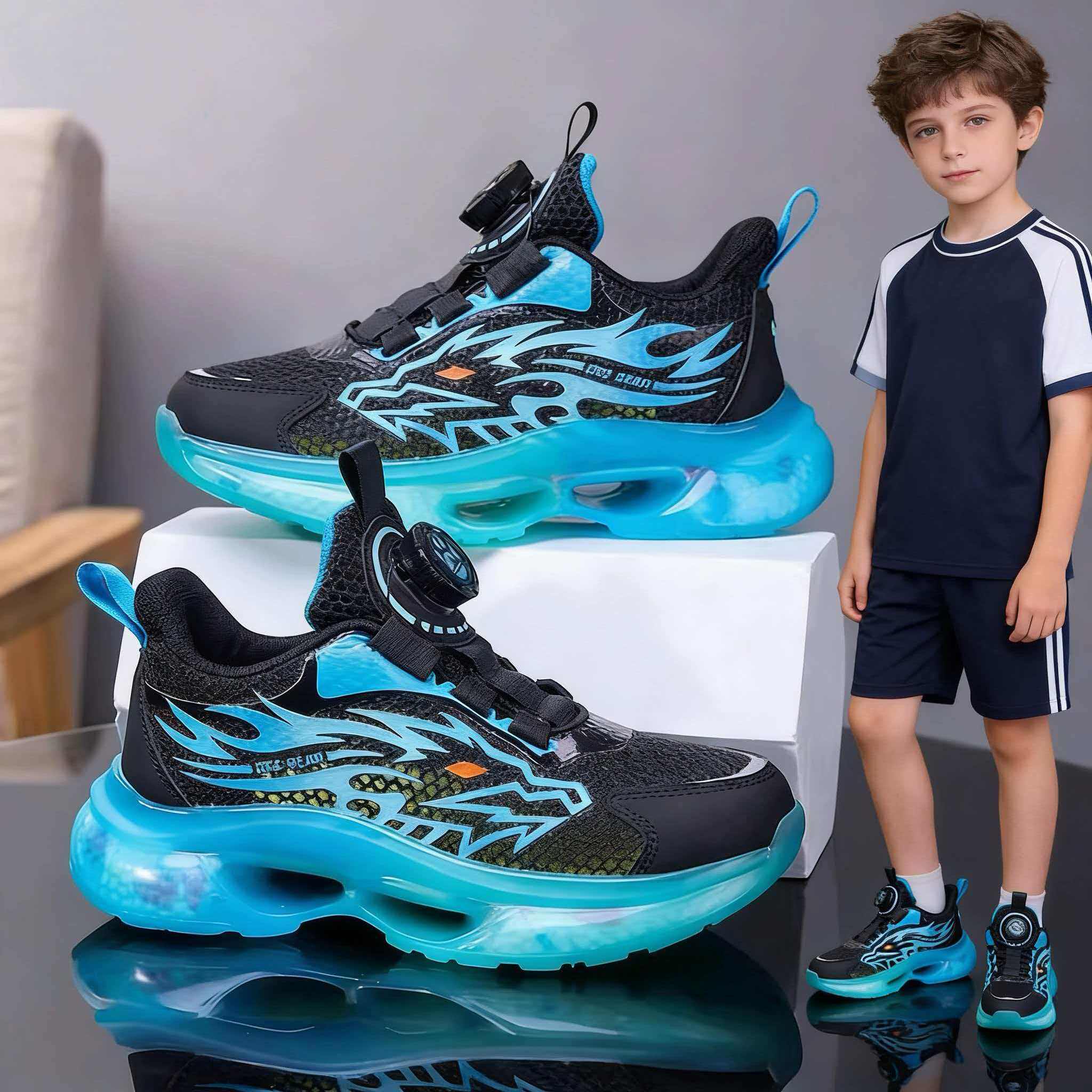 2026春秋儿童运动鞋男孩网面透气男童鞋子中大童小学生皮面鞋防水