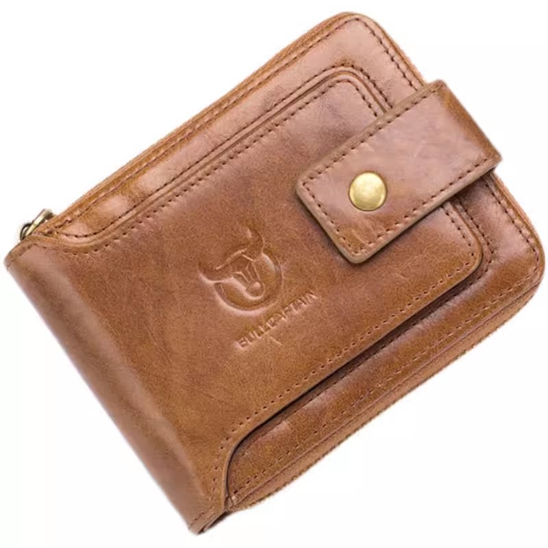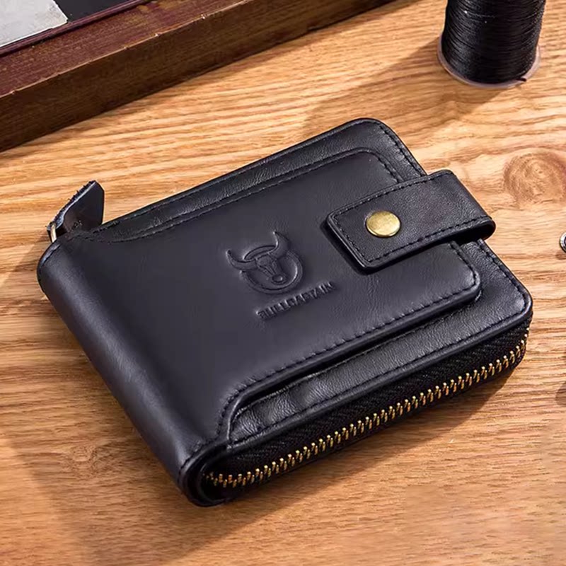 牛船长男士真皮横款搭扣拉链短款钱包头层牛皮多卡位驾驶证零钱夹