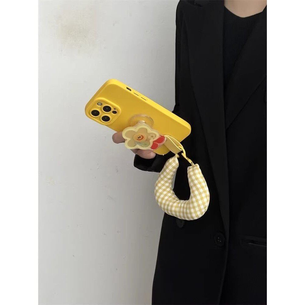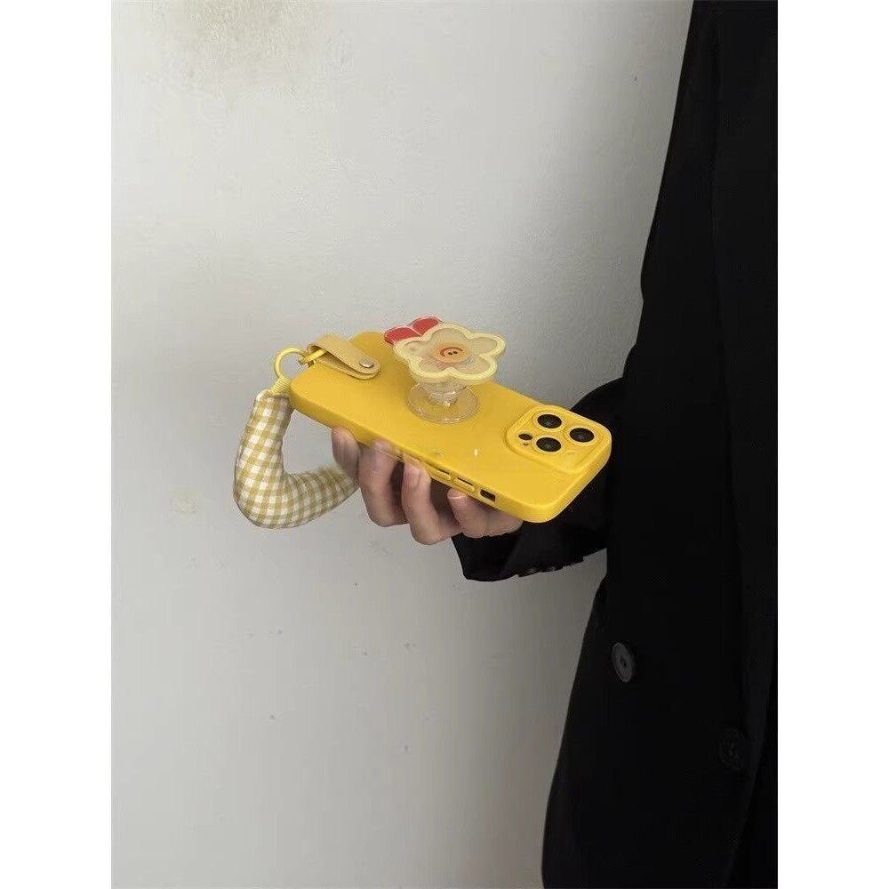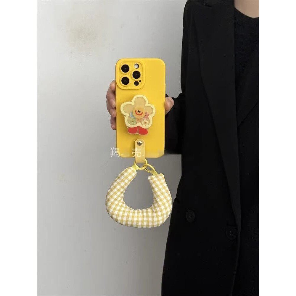 ins黄色摇摇乐太阳花支架适用于IPhone17/16promax手机壳苹果15腕带13/14软防摔保护套