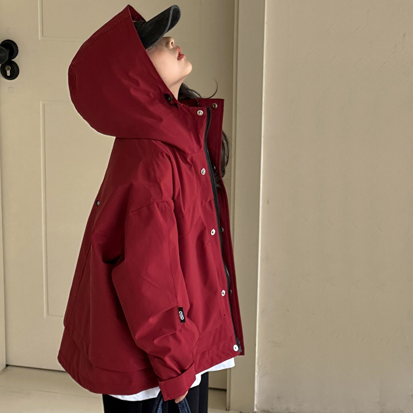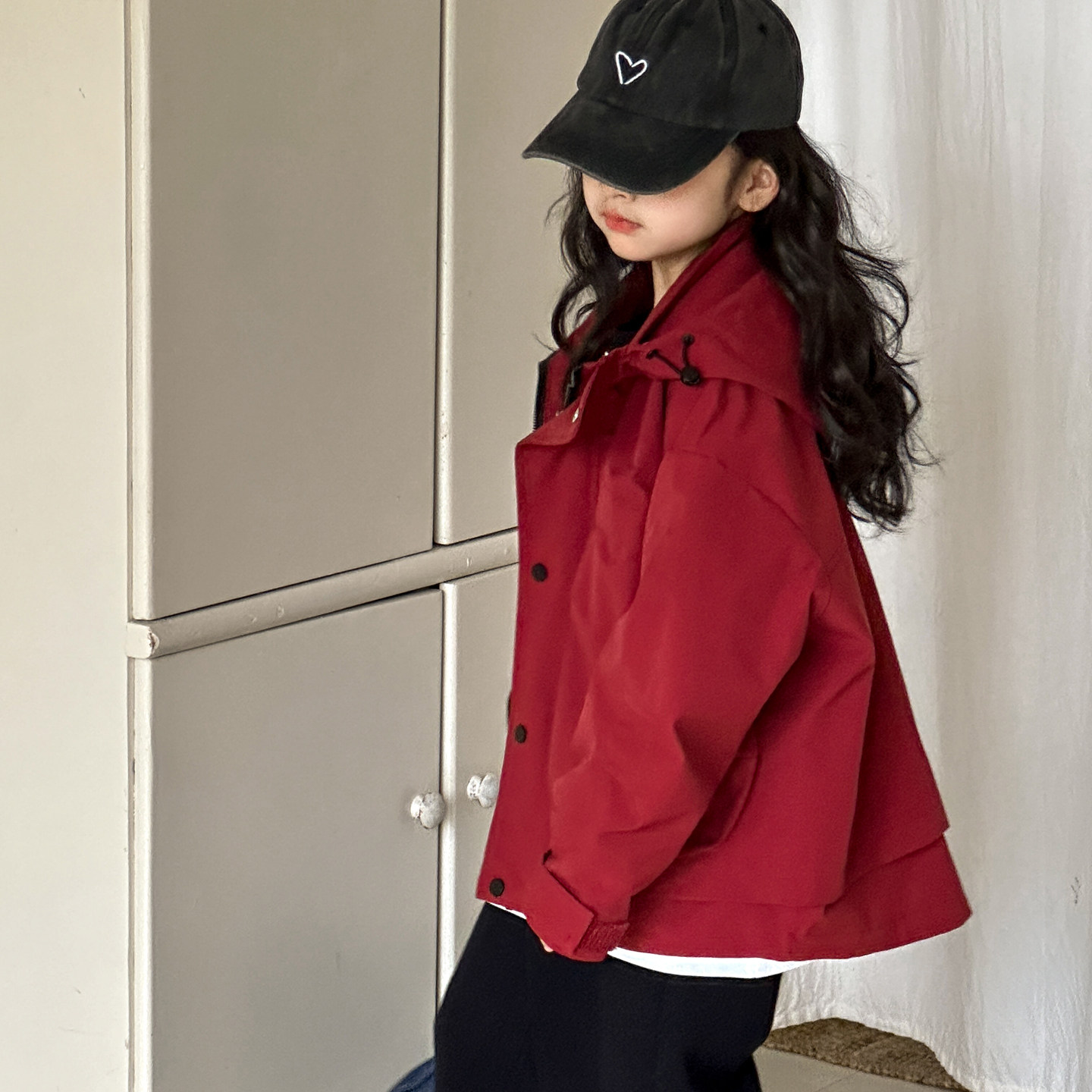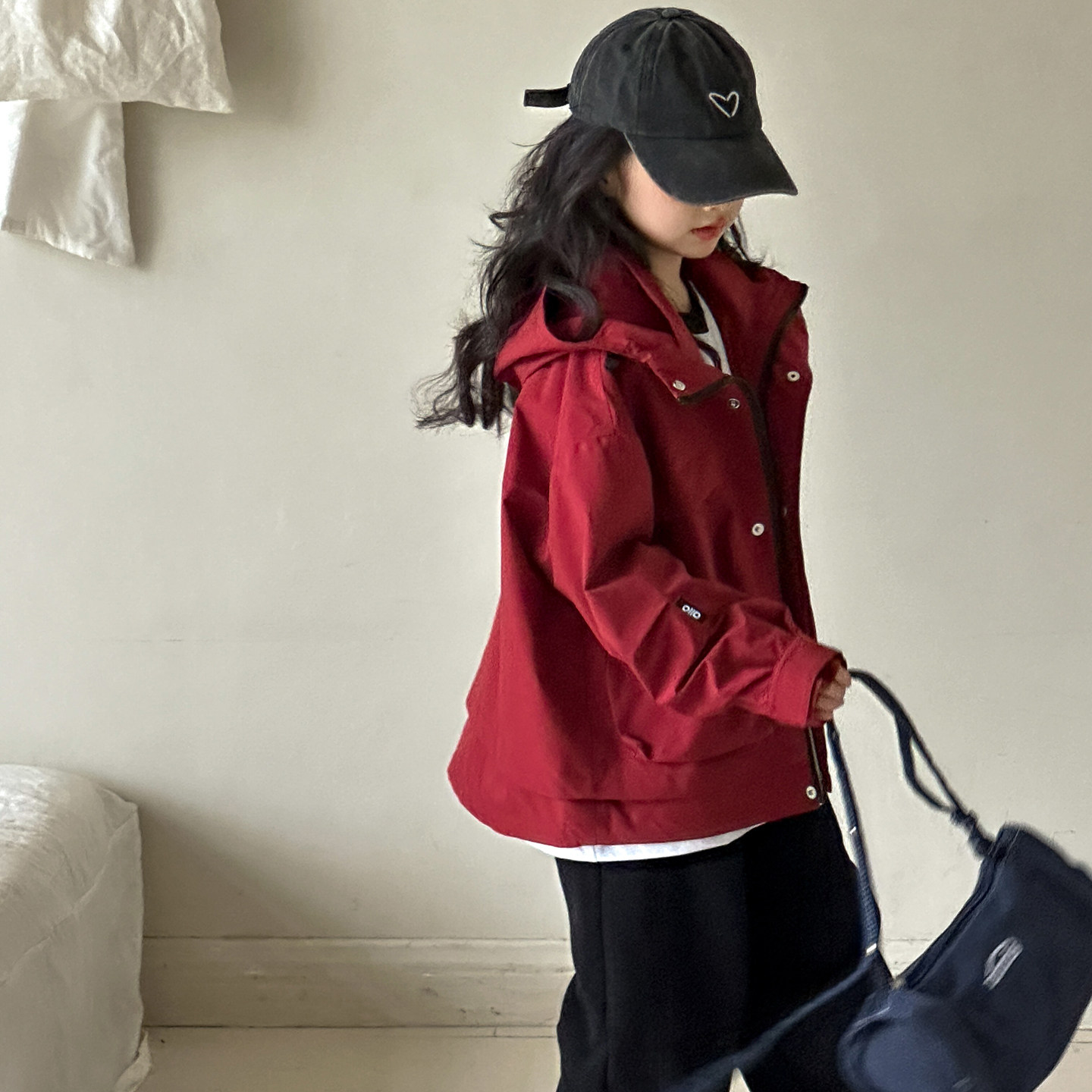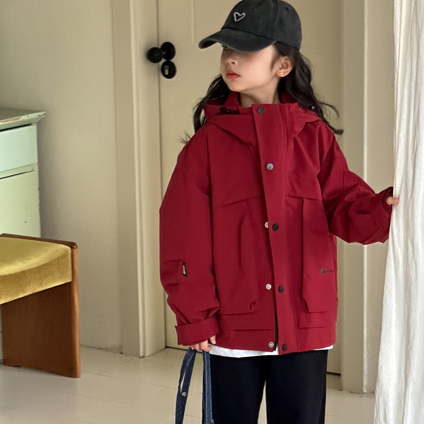 女童冲锋衣春秋2026新款儿童春装外套红色连帽大童春季超好看上衣