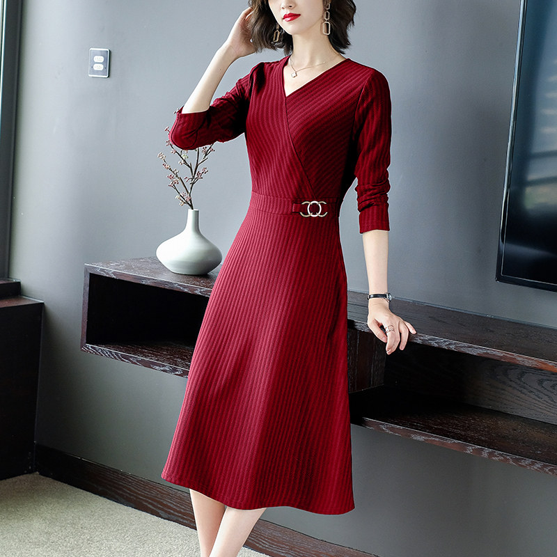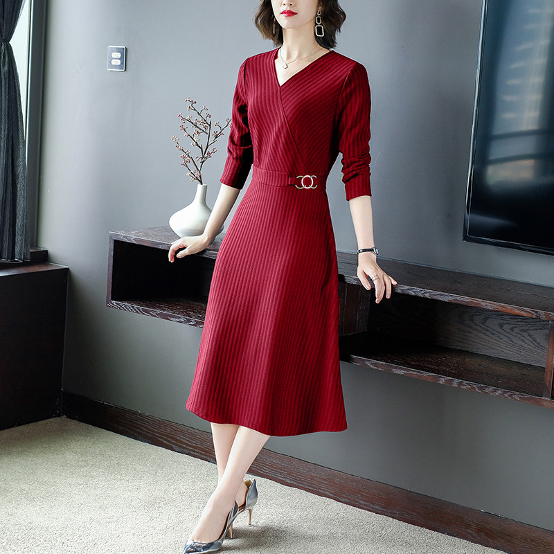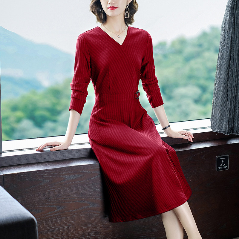 早春款连衣裙贵夫人长袖修身40岁2025新款中长款洋气收腰红色裙子