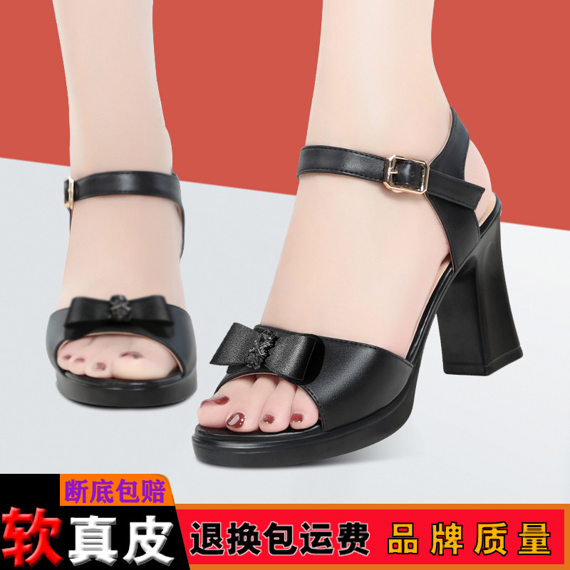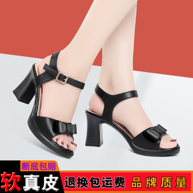 2025年新款通勤百搭高跟鞋轻便透气防滑夏季女鞋一字带旗袍走秀鞋