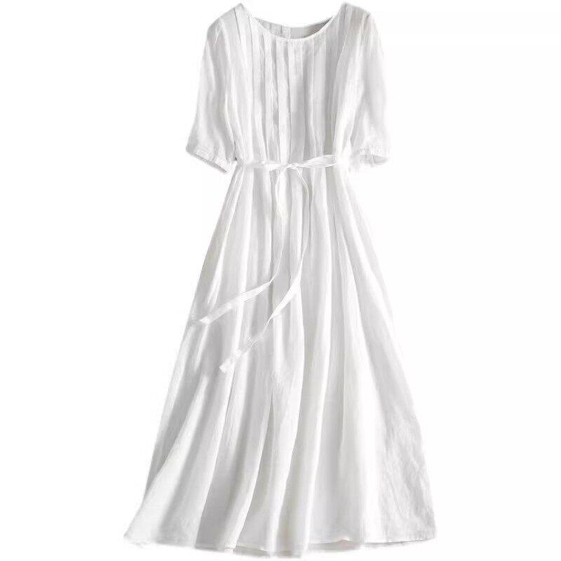 白色连衣裙子女士装春秋2026年新款夏季法式高级感气质短袖中长。