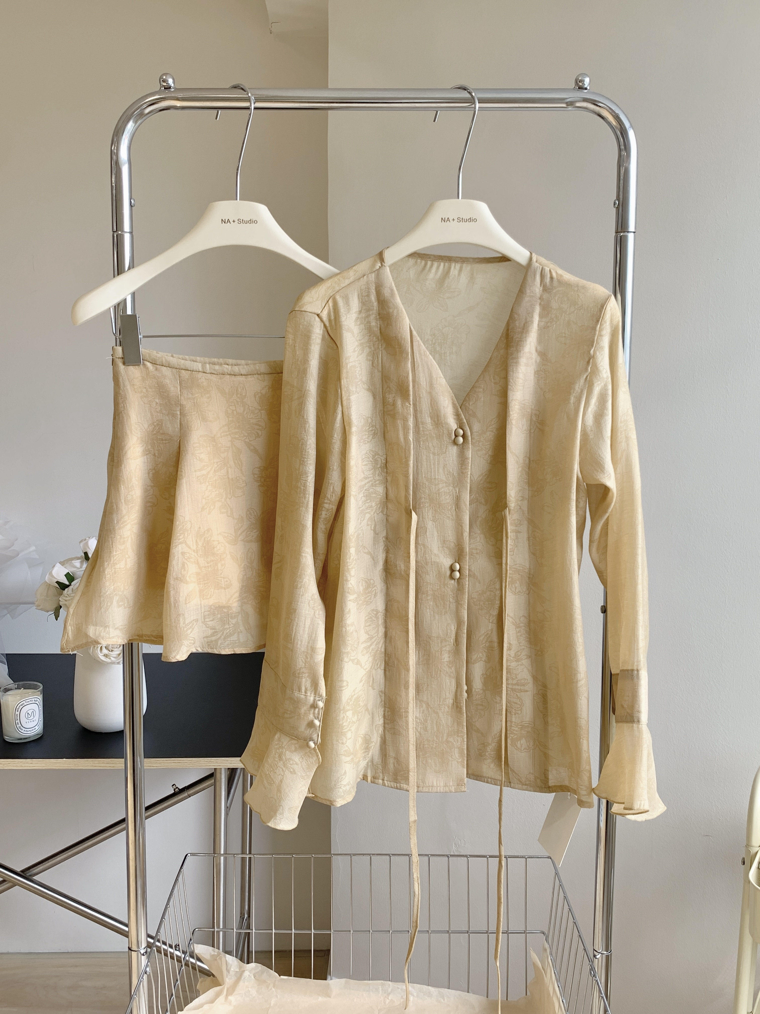 新中式套装夏季上衣长袖天丝衬衫女绝美小个子国风两件套2026新款