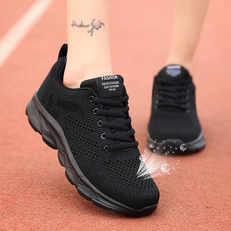 网眼女鞋夏季薄款学生网鞋黑色透气运动跑步鞋镂空百搭休闲妈妈鞋