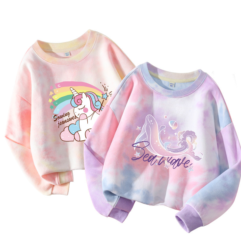 真维斯女童卫衣春秋款扎染上衣2026新款中大童春装儿童春季打底衫