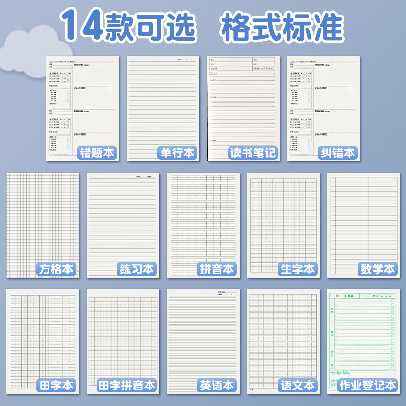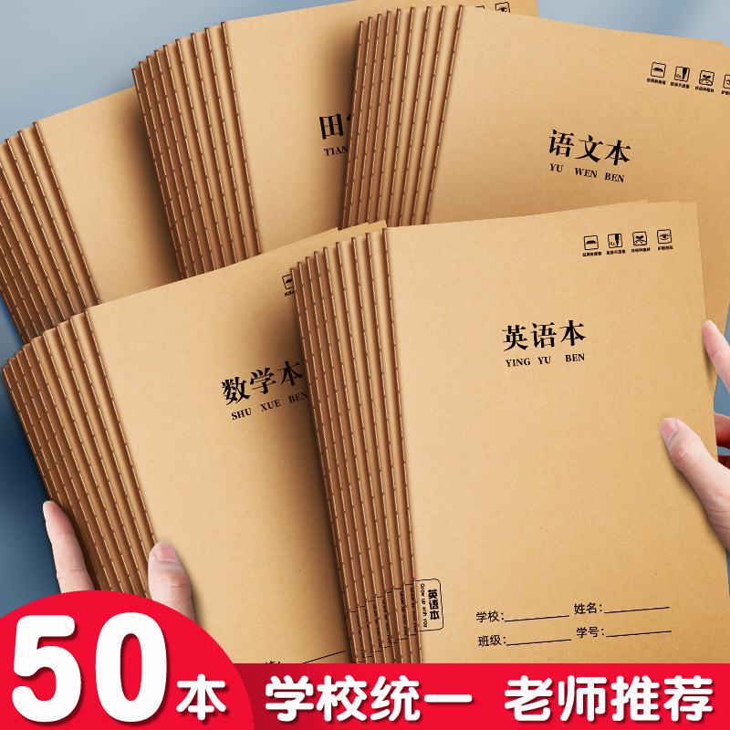 A5牛皮纸英语语文数学本作业本子作业登记本拼音本错题本生字本加厚小学生123年级作业本格本方格单行田字