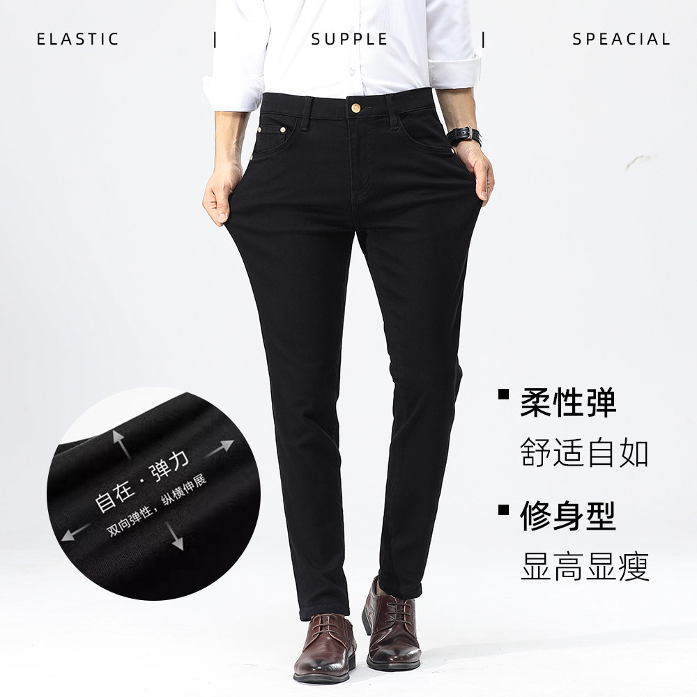 水洗弹力修身黑色牛仔裤男夏季薄款2026新款潮流百搭小直筒裤男