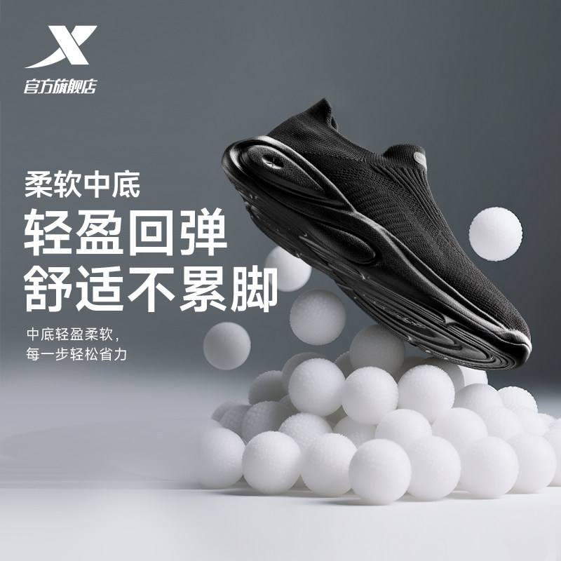 特步ComfGo|休闲鞋夏季网面透气男鞋软底舒适一脚蹬轻便运动鞋女
