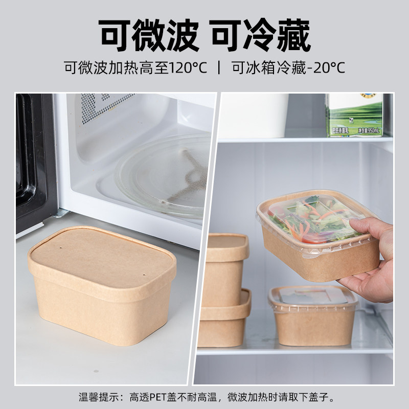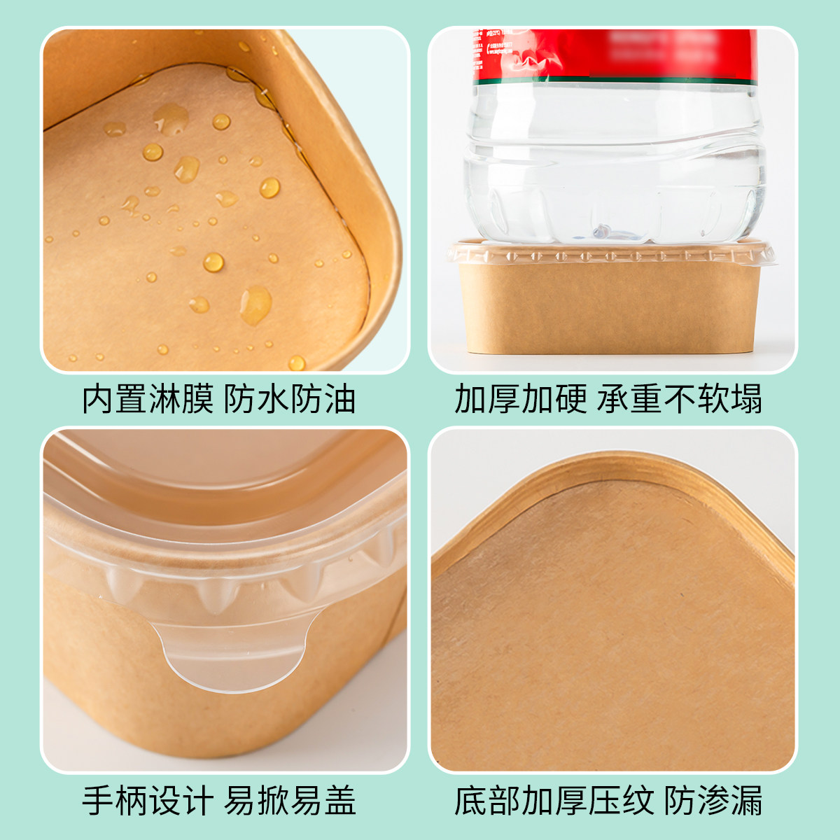 一次性餐盒饭盒牛皮纸长方形打包盒外卖可降解沙拉野餐便当盒环保