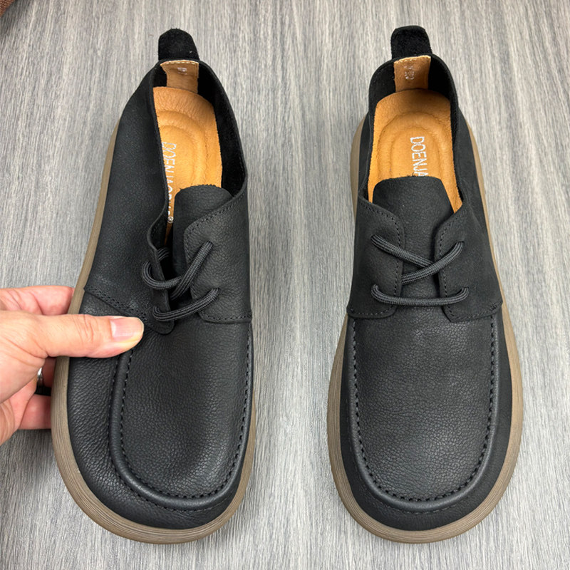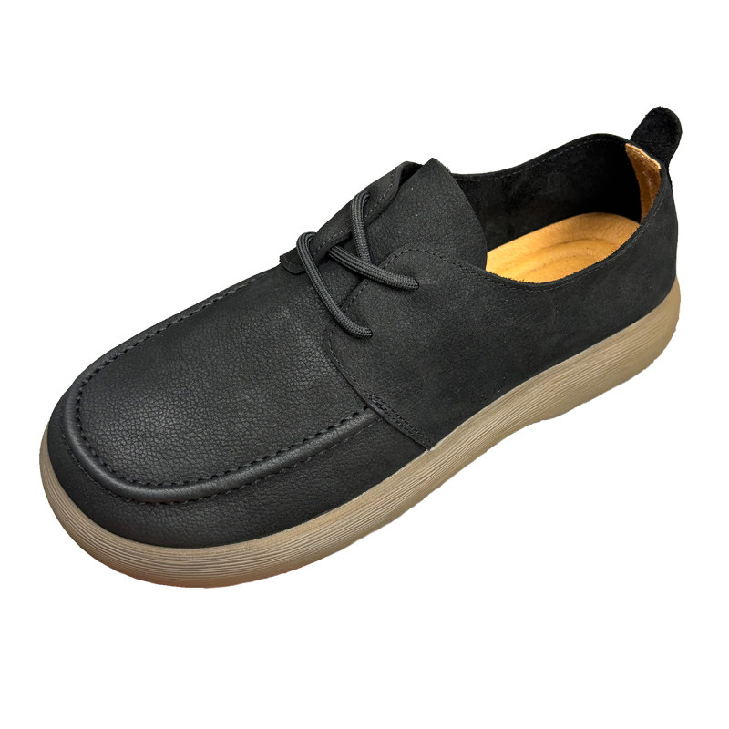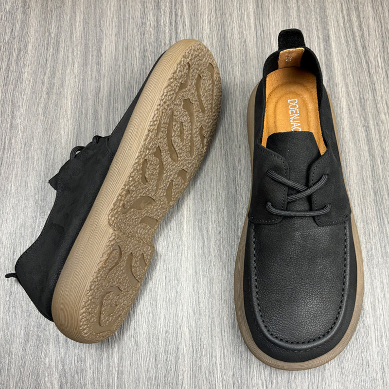 复古单层牛皮透气皮鞋男款黑色百搭软底舒适休闲真皮宽脚手工男鞋