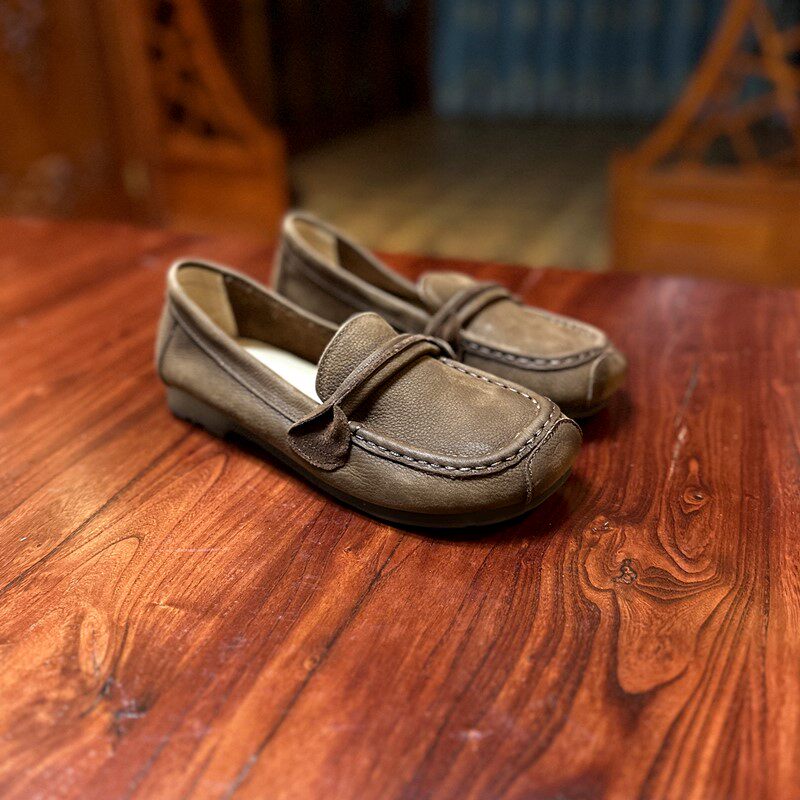 【烁掌柜】春新品复古文艺范真皮女鞋头层牛皮软底软面舒适乐福鞋
