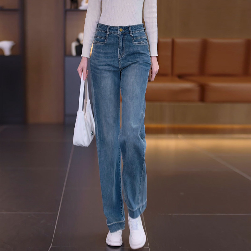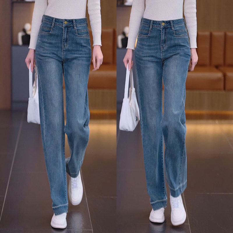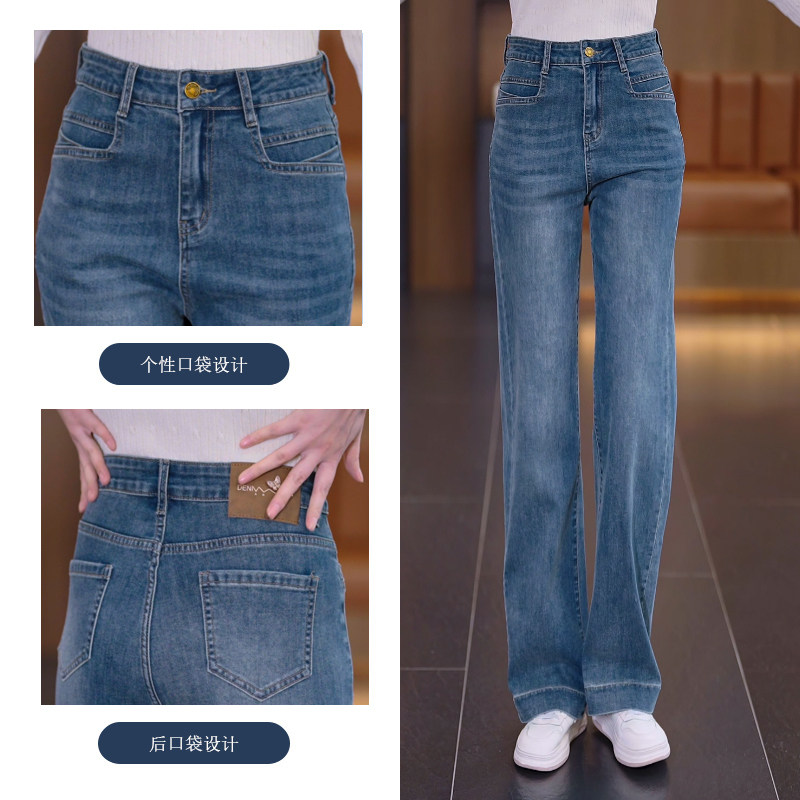 直筒牛仔裤女春季2026新款窄版阔腿裤高腰弹力九分裤显瘦时尚女裤