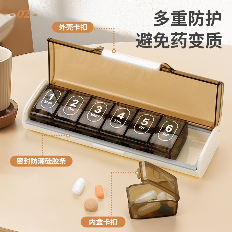 药盒便携式一周七天药品分装收纳盒避光老人吃药提醒分药盒随身小