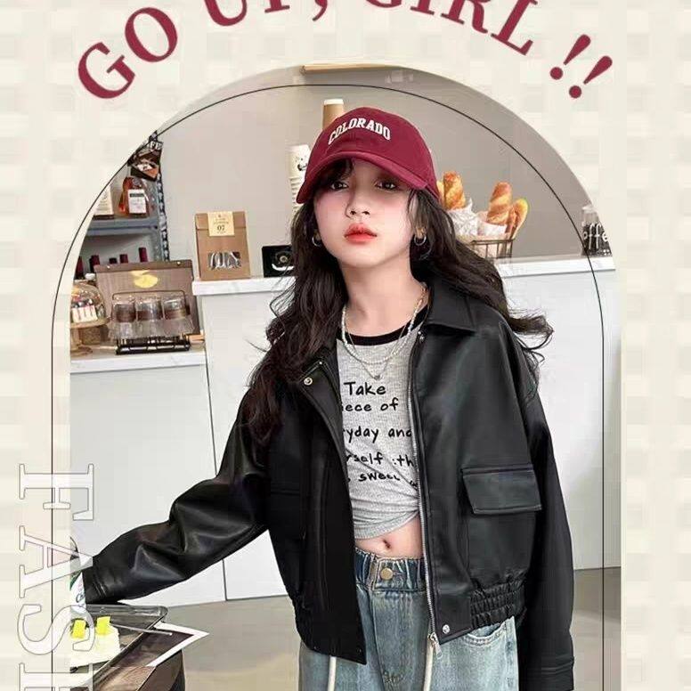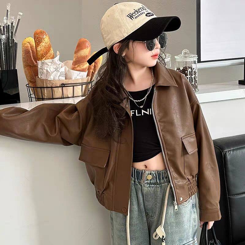 女大童春款皮衣时尚韩版2024新款初中生女孩夹克百搭潮流外套显瘦