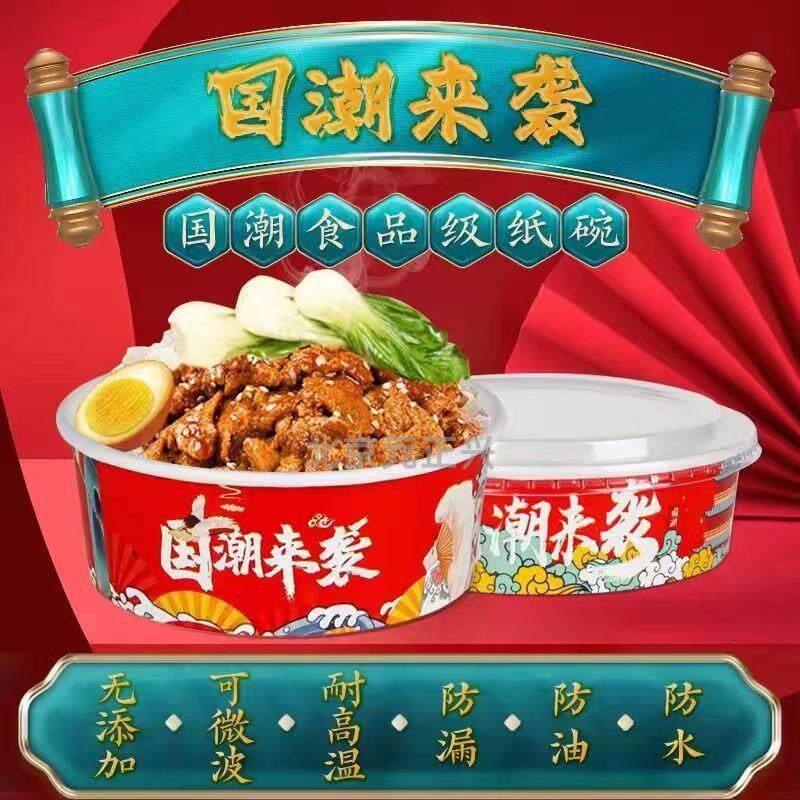 国潮来袭牛皮纸打包盒一次性纸碗沙拉碗饭盒盖饭商用外送餐盒