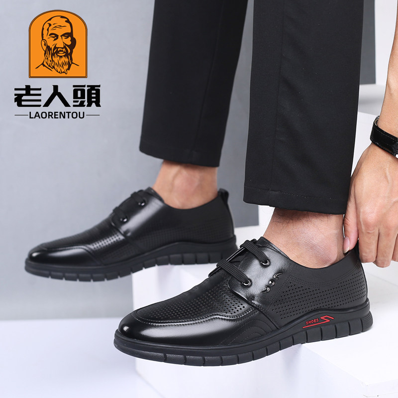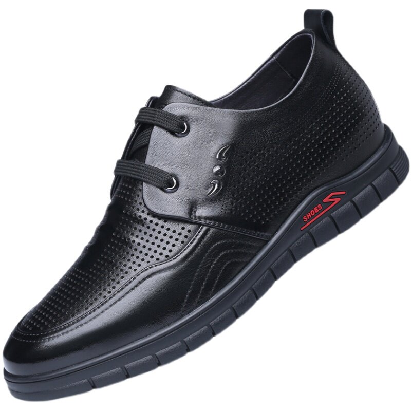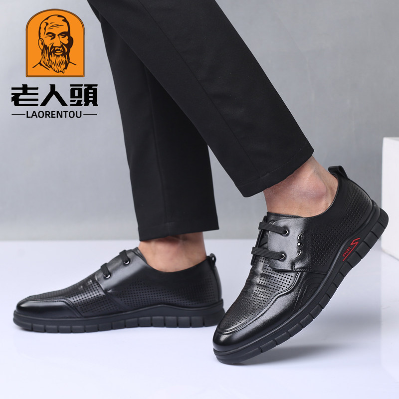 老人头皮鞋男真皮隐形内增高皮鞋男镂空打孔凉鞋男休闲透气男鞋子