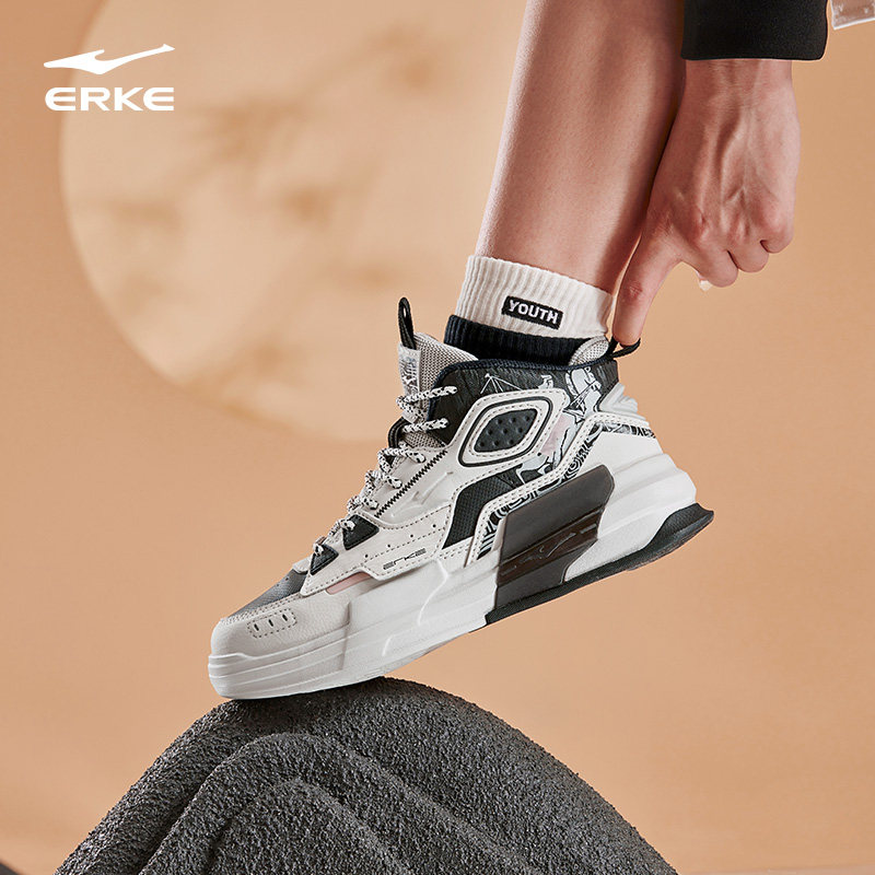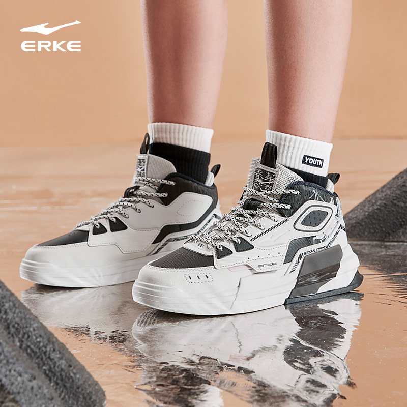 311线报网描述:唐宫鸿星尔克男子高帮板鞋新款复古厚底鞋子