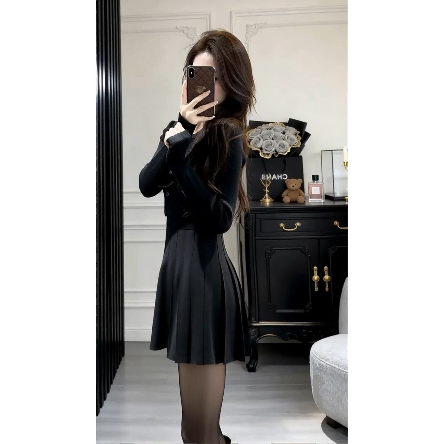 早春小个子黑色法式针织连衣裙子女冬季2026新款气质收腰绝美短裙