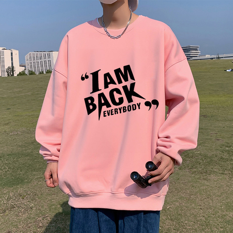 冬季青少年男生粉色圆领加绒卫衣不带帽男初中高中学生加厚秋冬款